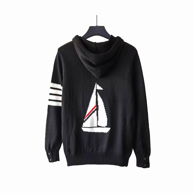 Thom Browne.Tb four-stripe sailboat pattern zip-up sweater