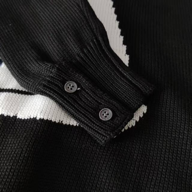 Soft and comfortable Production is made with imported Japanese automatic knitting machines with tight stitches The sleeves are knitted with four stripes Buttons are made of natural shell closures The fit can be slim or loose Comfortable and breathable Unisex