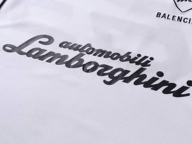Real shot top version. Official quality Balenci*Ga Paris co-branded Lamborghini jersey, printed embroidery on the front and back, embroidery on the left and right sleeves, multi-position splicing short-sleeved T-shirt#Super heavy craftsmanship.