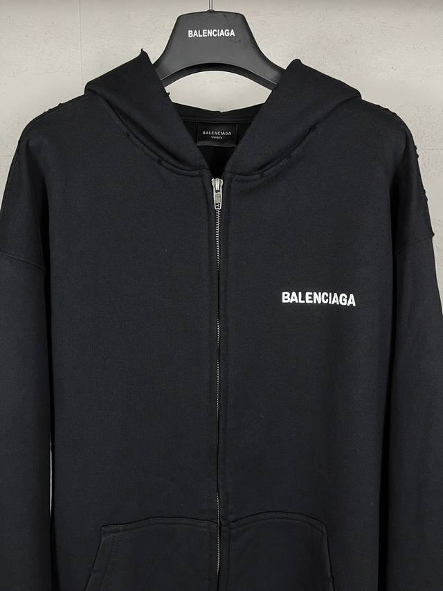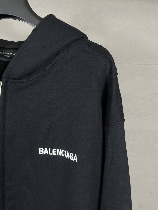 Real shot top version. Official website quality Balenci*G* 25 Fall/Winter new style. Hooded zip-up cardigan sweatshirt with Paris logo embroidery on the front and back, washed and distressed finish. Finished garment washed and distressed. Ddd Ss25 latest style. First-time development, far superior to market goods. Welcome to compare. Fabric is Paris Zp custom-woven and dyed 100% cotton oversized sweatshirt. Weight 460g, clean surface, clear weave, soft and comfortable. Ribbing uses custom dyeing with no color difference. Embroidery uses Tajima imported embroidery machine, finished garment washed and distressed. Far superior to market goods. Welcome to compare. Fit adopts OS loose drop shoulder fit. Unisex Ddd Code: Bl259936 Ddd Colors: Black, Off-white Ddd Sizes: Xs SM L DDD