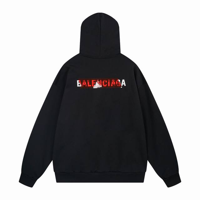 Real shot top version. Official website quality Balenci*Ga Paris #2025 Autumn/Winter New Arrival Front and Back Letter Logo Embroidered Tape Pressed Hooded Sweatshirt. Full of design sense, welcome to compare. The fabric is made of Paris Zp custom-woven and dyed 100% cotton, weighing 460 grams, with a clean surface, clear texture, soft and comfortable. The ribbing uses custom dyeing with no color difference. The classic letter logo is embroidered using an imported Tajima embroidery machine. The tape uses imported transparent adhesive for embossing, creating a three-dimensional effect. Replicating a brick cabinet style, the fit adopts an Os loose drop shoulder style. Unisex style. Code: Bl259910. Colors: Black, Sky Blue. Sizes: Xs, S, M, L.