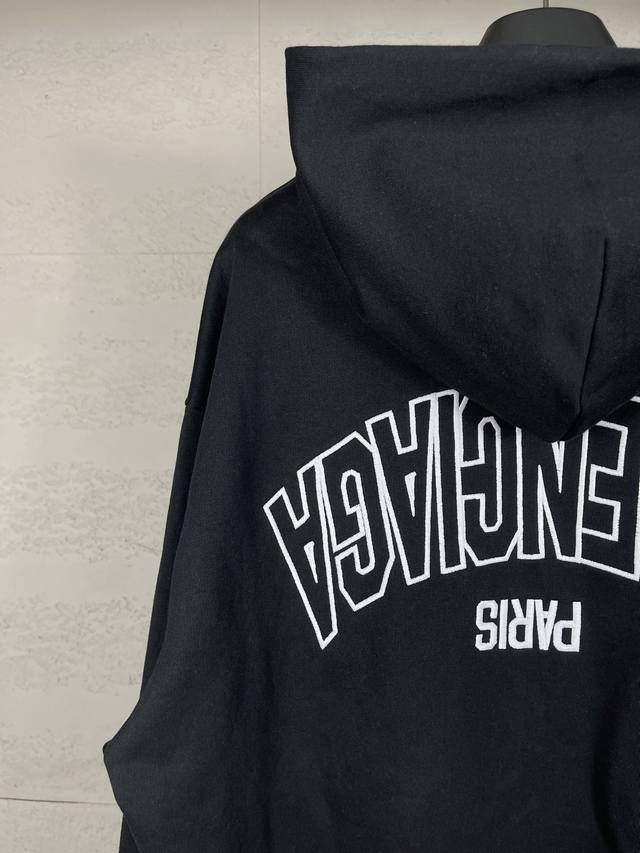 Real shot top version. Official website quality Balenci*Ga Paris #2025 New Style Mirrored Back Letter Embroidery Hooded Zipper Cardigan Sweatshirt #2025 Autumn/Winter, Same as brick store, welcome to compare. The fabric is made of Paris Zp custom-woven and dyed 100% cotton oversized sweatshirt, weighing 460 grams, clean surface, clear fabric texture, soft and comfortable. The ribbing is custom-dyed with no color difference. The letter logo is embroidered with imported Tajima embroidery machine. The letters are clear and the effect is three-dimensional. Replicas brick store style, the fit adopts Os loose drop shoulder fit. Unisex style. Code: Bl259923. Color: Black. Size: Xs SML.