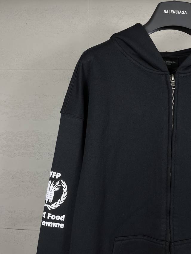 Real shot top version. Official website quality Balenci*Ga Paris. 2025 new style. Wfp Food Agency collaboration. Front, back, left and right sleeves foam 3D printed hooded zip-up cardigan sweatshirt. Same as brick store. First-time genuine product research and development, happy comparison! The fabric is made of Paris Zp custom woven and dyed 100% cotton sweatshirt. Weight 460 grams, clean fabric surface, clear fabric texture, soft and comfortable. The ribbing is custom dyed with no color difference. The print uses imported plastisol foam printing, the letters are clear and the effect is three-dimensional. The fit adopts Os loose drop shoulder fit . Unisex Ddd code: Bl259918 Ddd Color: Black Ddd Size: Xs SML DDD