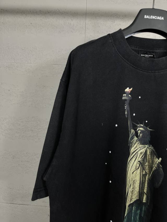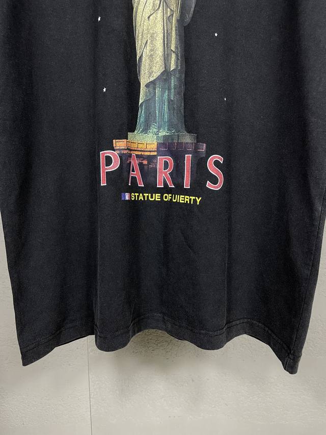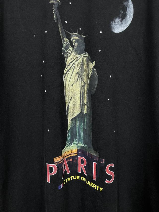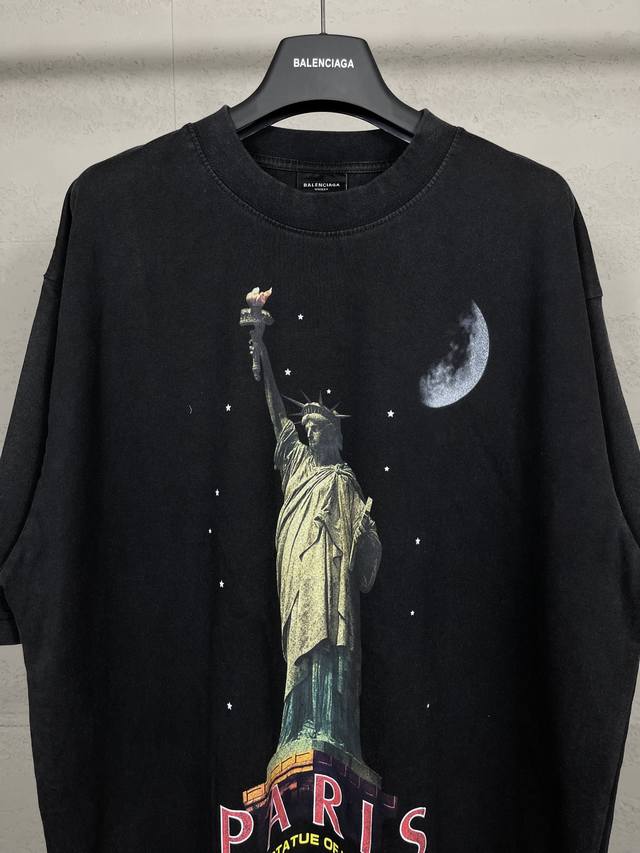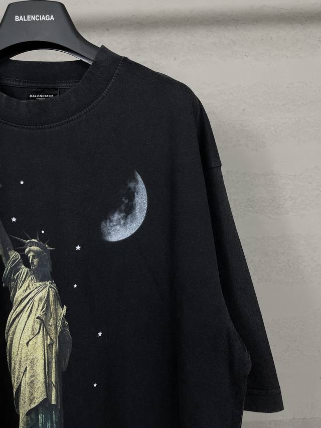 Real shot top version. Official website quality Balenci*Ga Paris. New model of the goddess washed distressed short-sleeved T-shirt for the catwalk. All patterns, details and colors are customized on the Y board. Note that the entire pattern of the genuine product is a night scene with moon pattern light. Jubie Market is stocked according to the picture. Brick cabinet synchronization. First-time genuine research and development, welcome to print and compare! The fabric is made of Paris Zp fixed weaving and dyeing cotton double yarn. The weight is 260 grams, the cloth surface is clean. The cloth texture is clear, soft and comfortable. The thread is fixed and dyed without color difference. The printing is made of environmentally friendly imported materials and the ink is directly sprayed, the letters are clear, and the effect is three-dimensional. The whole garment is washed and distressed. The version adopts the Os loose drop shoulder version. The same style for men and women