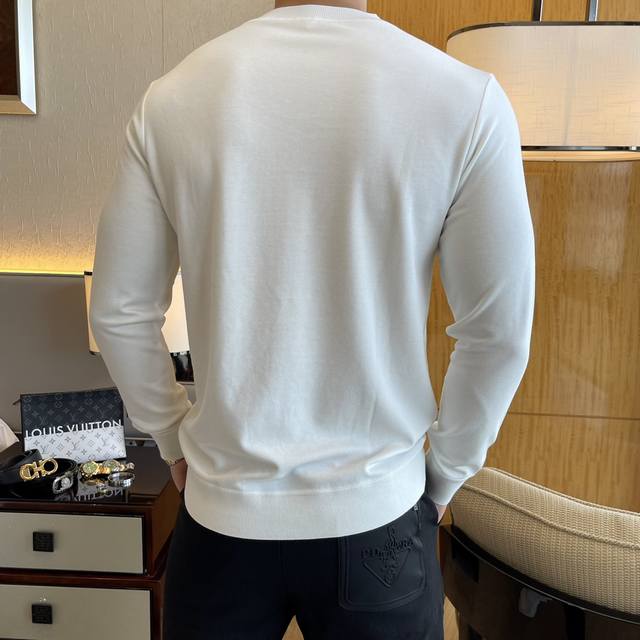 Return/Exchange after the New Year. This is a popular long-sleeved T-shirt from the V-line, a top-selling autumn collection. Made with a custom-designed high-grade cotton-wool blend fabric , featuring a stylish designer logo design. Soft, delicate, comfortable, and warm, it's crafted with multiple processes. A must-have basic undershirt for every man's wardrobe, it can be paired with various outfits anytime, anywhere to meet your daily needs. The design is simple yet sophisticated. Grab yours now! Standard fit, sizes M~3XL. Model 178cm, 145kg wears size L.