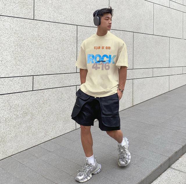 Rrr123 Fog Fear Of God three-party joint American letter printing heavyweight high street pure cotton short-sleeved couple style