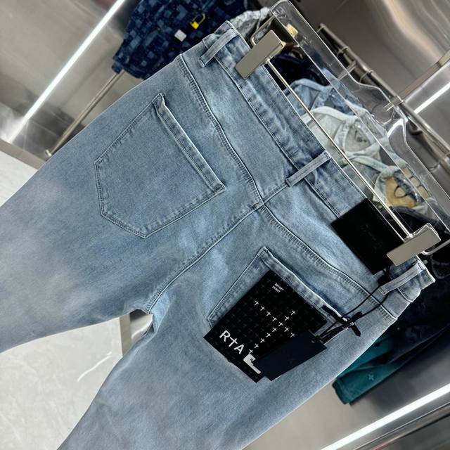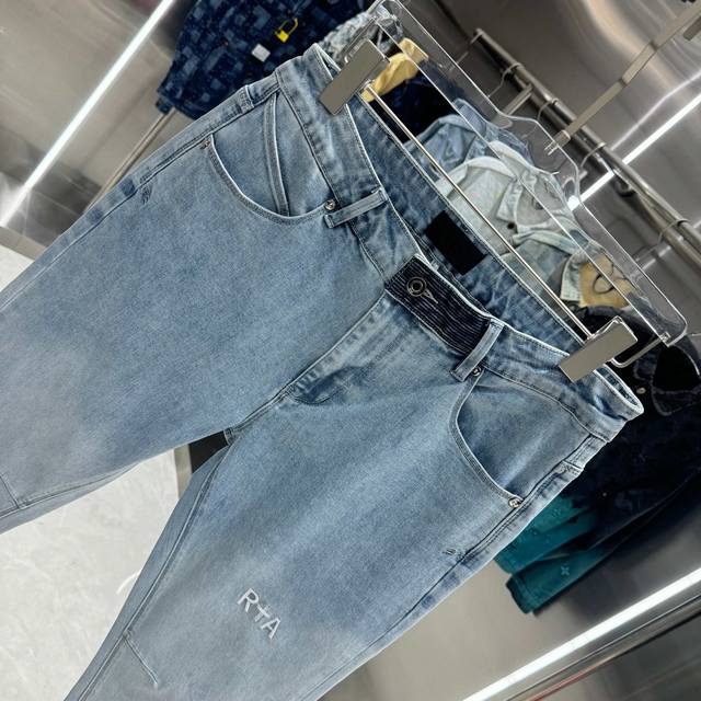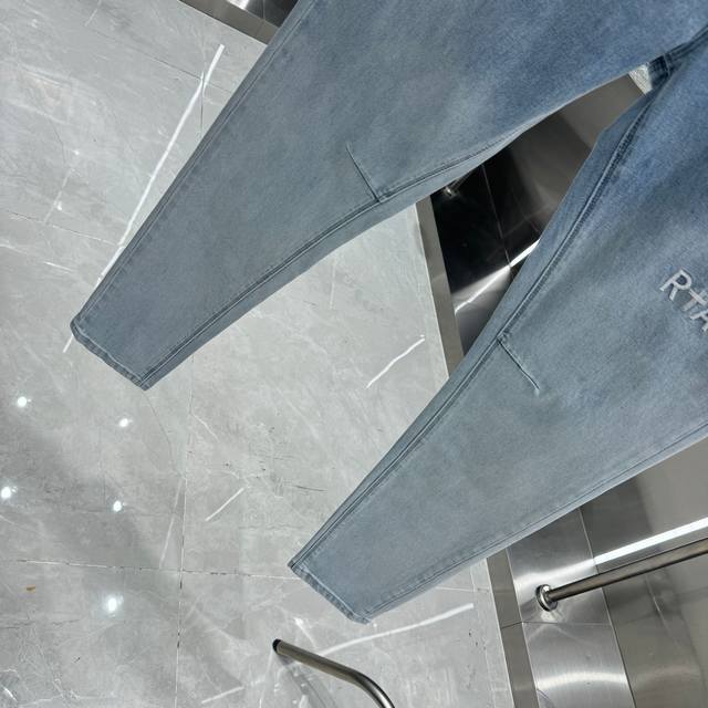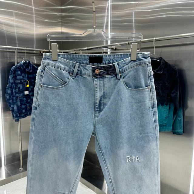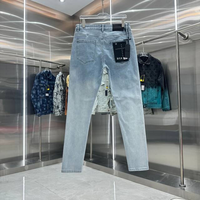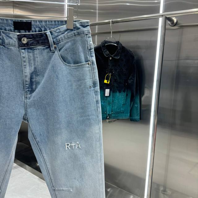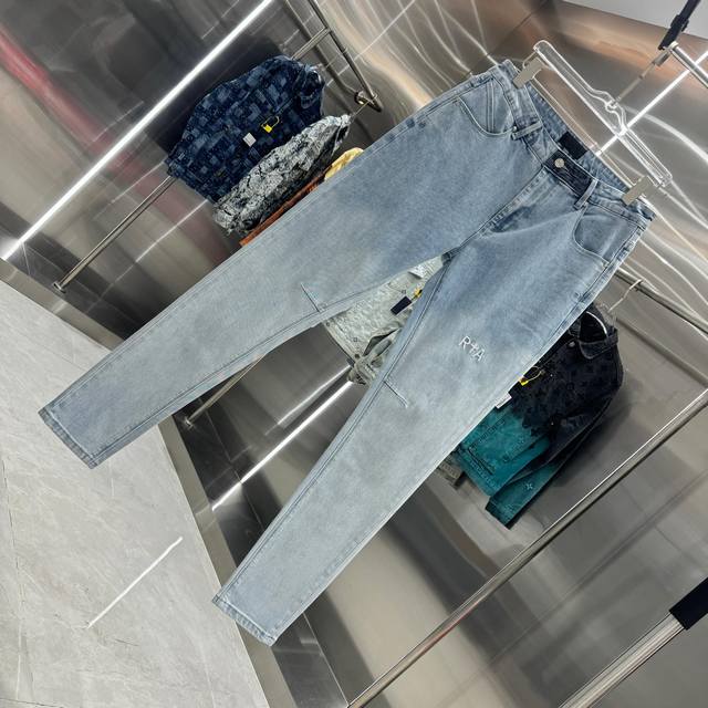 Rta Letter Embroidery Street Style Slim Fit Stretch Jeans, Light Blue, Sizes 30, 32, 34, 36, 38 DDD