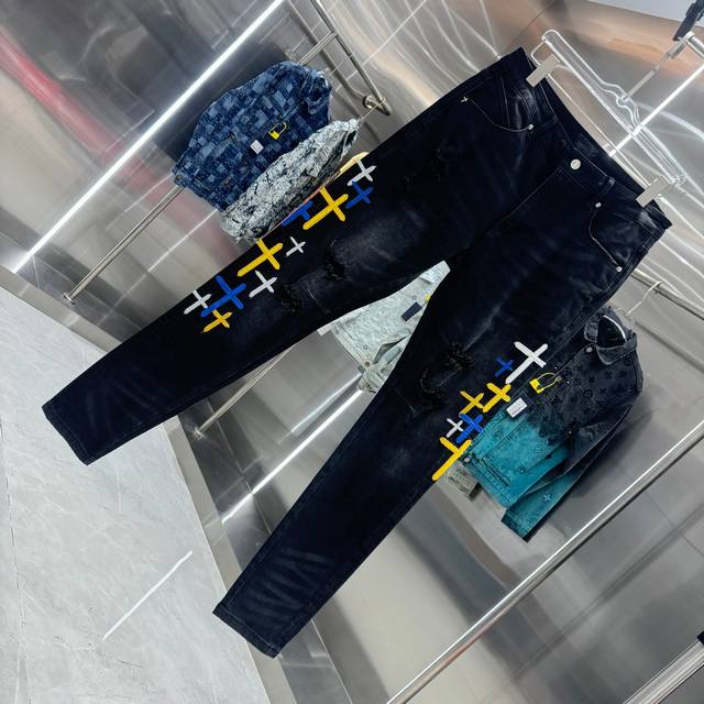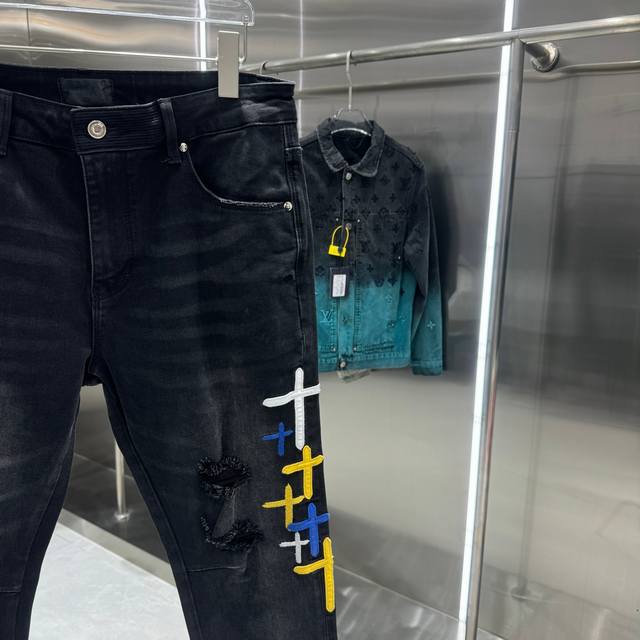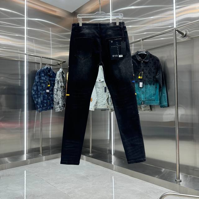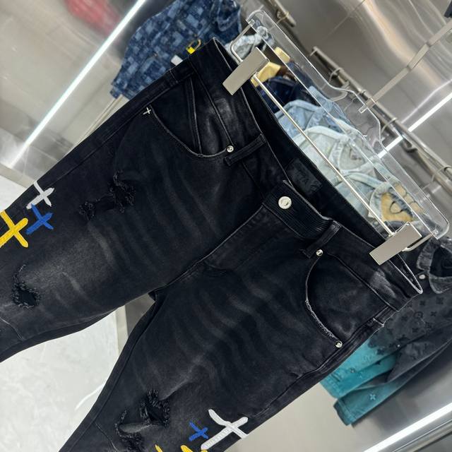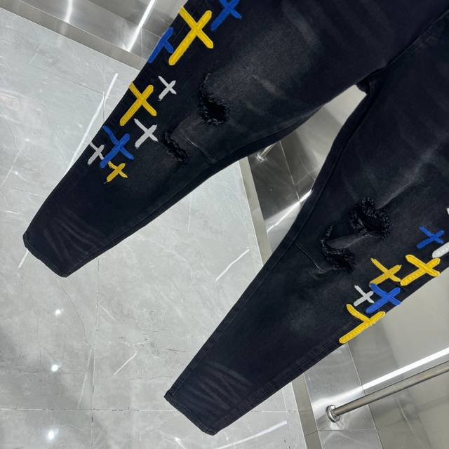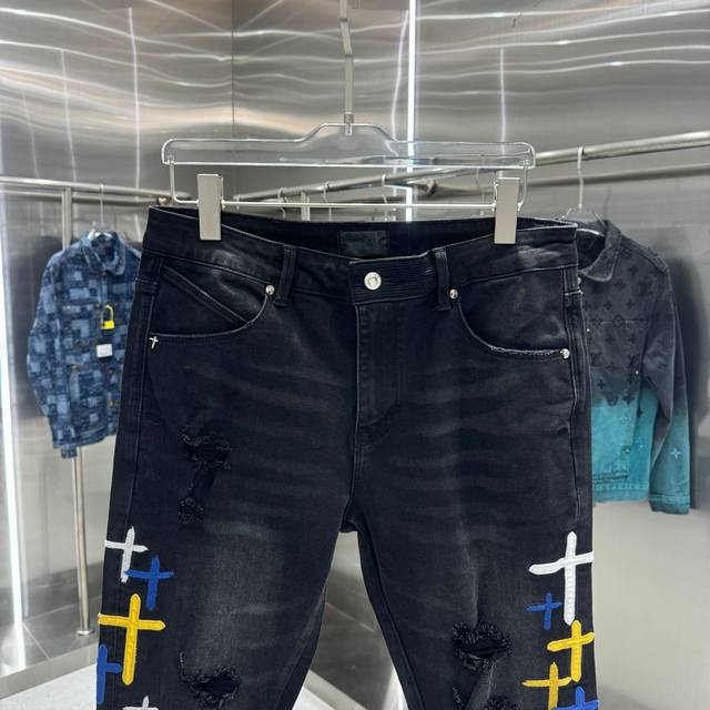 Rta Ripped + Cross Embroidery Street Style Slim Fit Stretch Jeans Color: Black Sizes: 30 32 34 36 38 DDD