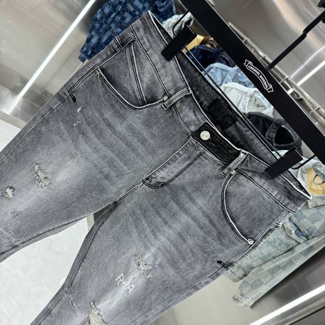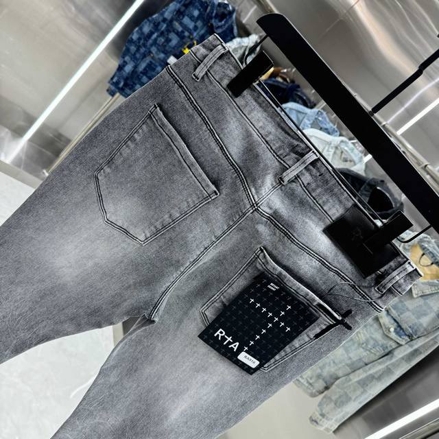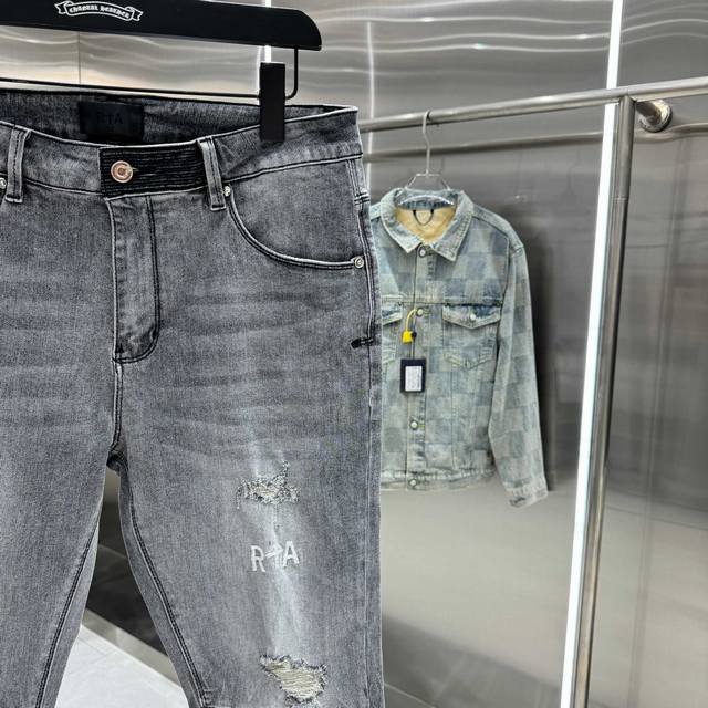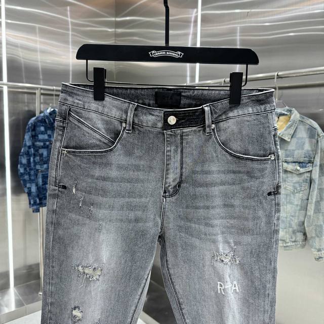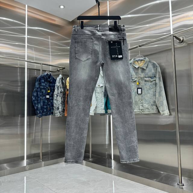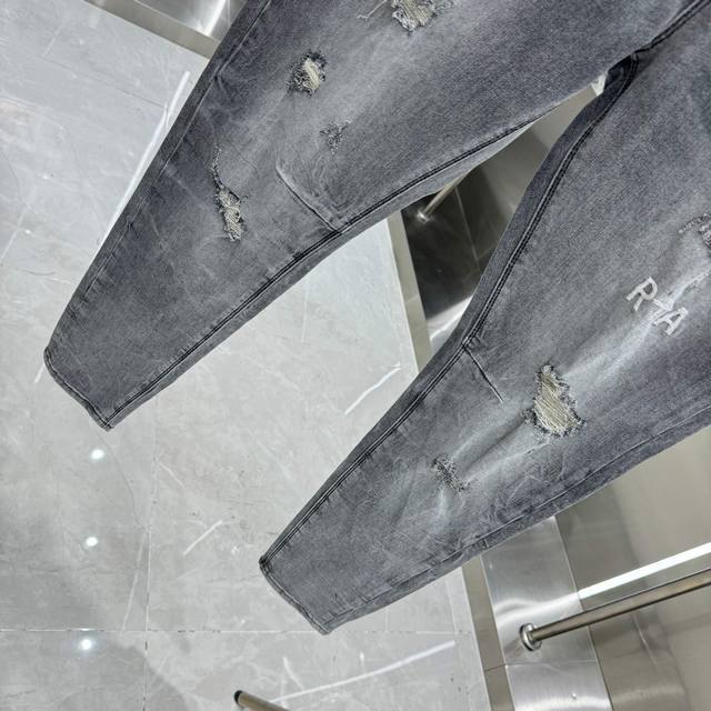 Rta Ripped + Embroidered Lettering Street Style Slim Fit Stretch Jeans Color: Light Gray Sizes: 30 32 34 36 38 DDD