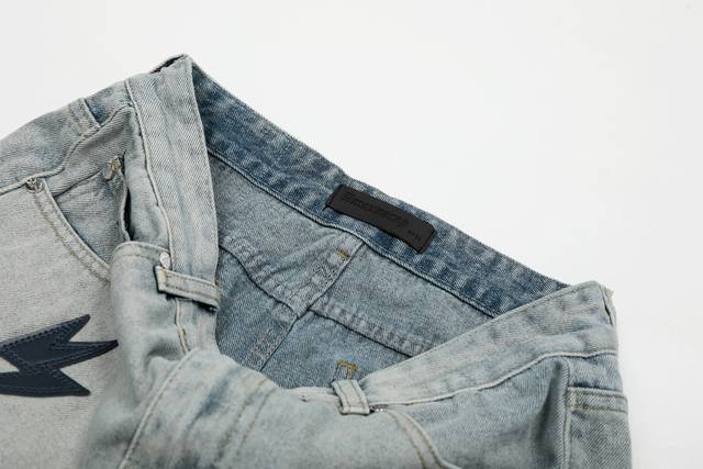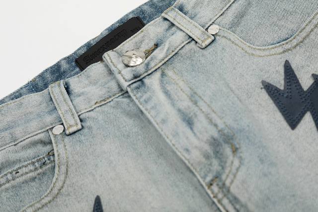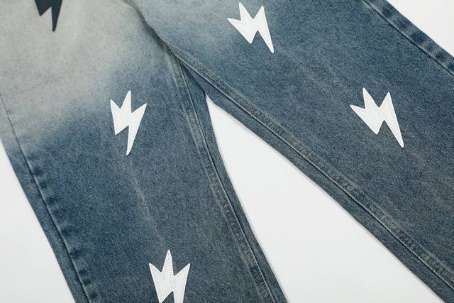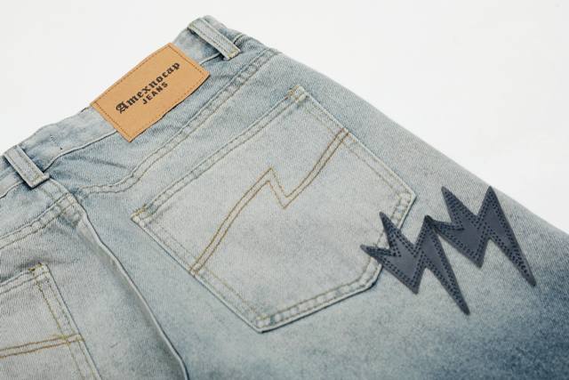 S03 # DDD Amexnocap Snow Mountain Gradient Colorful Lightning Patchwork Couple Style Ice Blue Washed Distressed Jeans DDD DDD The only correct version, different from the market's common goods DDD DDD Vintage Levis classic base with a different wash texture, extremely high cost performance!! Very friendly to both slim and thick legs, the straight leg cut is very flattering and the perfect length is timeless, easy to match with various styles, a wardrobe essential!! The effect when worn is self-evident, everyone should own a pair to easily master the top-notch style DDD DDD The fabric is made of high-ounce fabric that is both stiff and soft against the skin without sacrificing texture, it's really hard not to love it! The effect of wearing it is immediate! DDD's properly customized leather patch on the back panel is not simply a patch on finished jeans and sold; it's a 1:1 replica, meticulously crafted with attention to detail. The overall leather label features clear, even stitching and exquisite workmanship