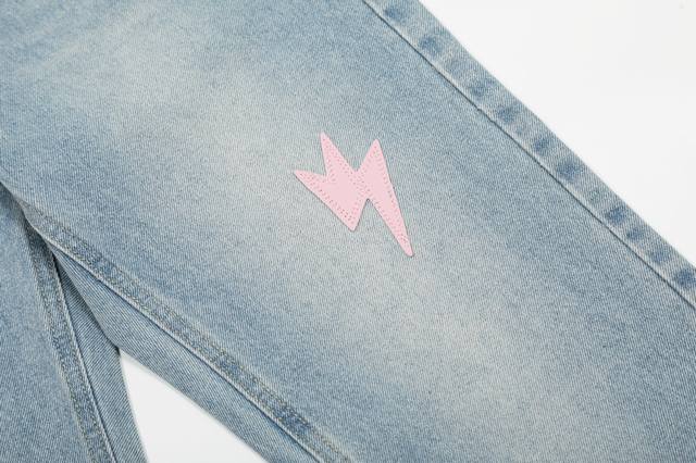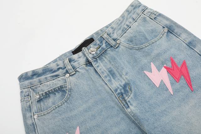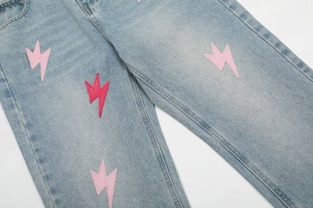 S09 # DDD Amexnocap Colorful Lightning Patchwork Couple Style Ice Blue Washed Distressed Jeans DDD DDD The only genuine version, different from market goods DDD DDD Vintage Levis classic base with a different wash texture, extremely high cost performance!! Very friendly to both slim and thick legs, the straight leg cut is very flattering and the perfect length is timeless, easy to match with various styles, a wardrobe essential!! The effect when worn is self-evident, everyone should own a pair to easily master the top-notch style DDD DDD The fabric is made of high-ounce fabric that is both stiff and soft against the skin without sacrificing texture, it's really hard not to love it! The effect of wearing it is immediate! DDD's properly customized leather patch on the back panel is not simply a patch on finished jeans and sold; it's a 1:1 replica, meticulously crafted with attention to detail. The overall leather label features clear, even stitching and exquisite workmanship