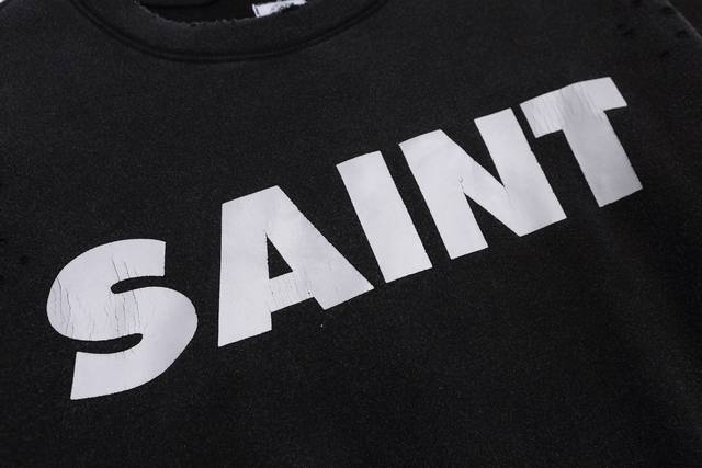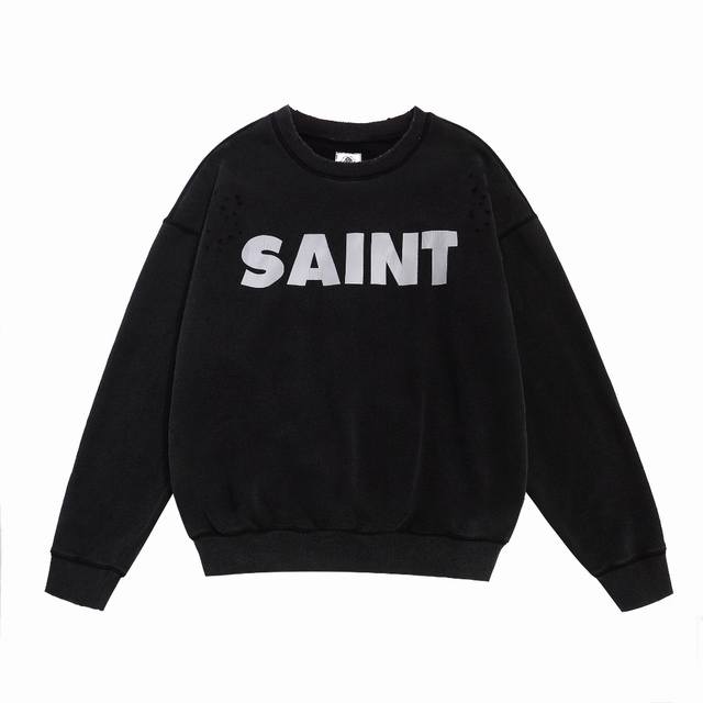 Saint Michael Snt Distressed Lettering Classic Retro Washed Fleece Casual Loose Crew Neck Sweatshirt Fabric: 420G Style Number: Sm620 Sizes: SML-XL Color: Black Price:
