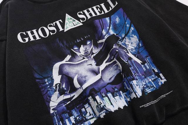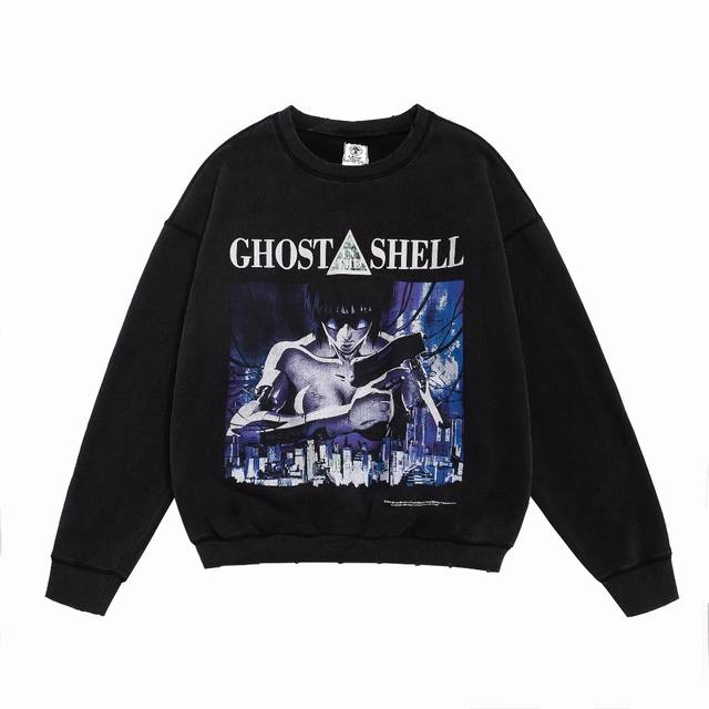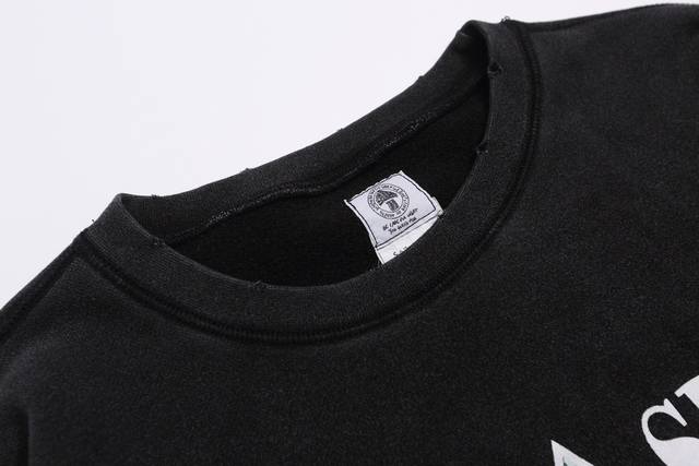 Saint Michael Vintage Washed Distressed Heavyweight Crew Neck Fleece-Lined Loose Pullover Sweatshirt Long Sleeve Shirt