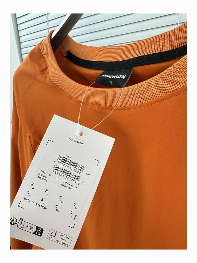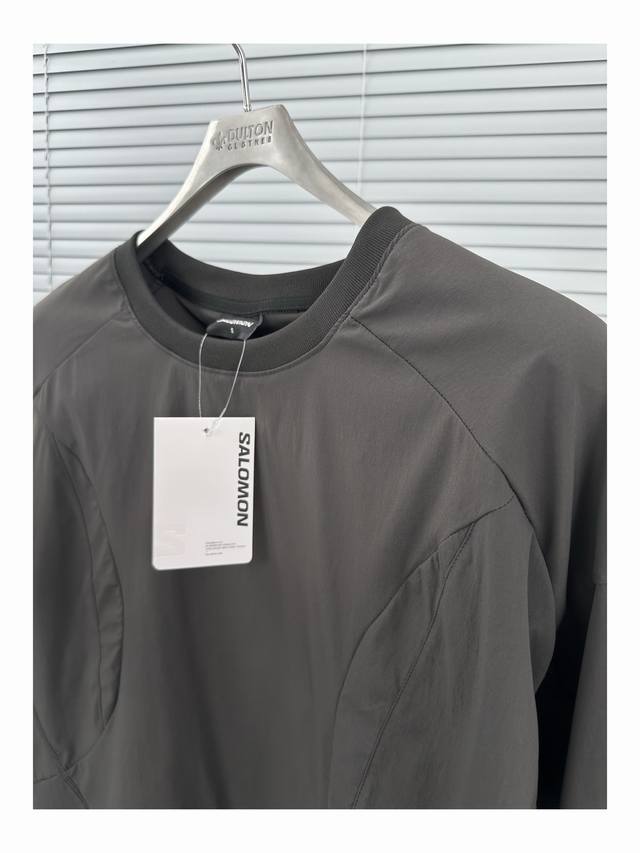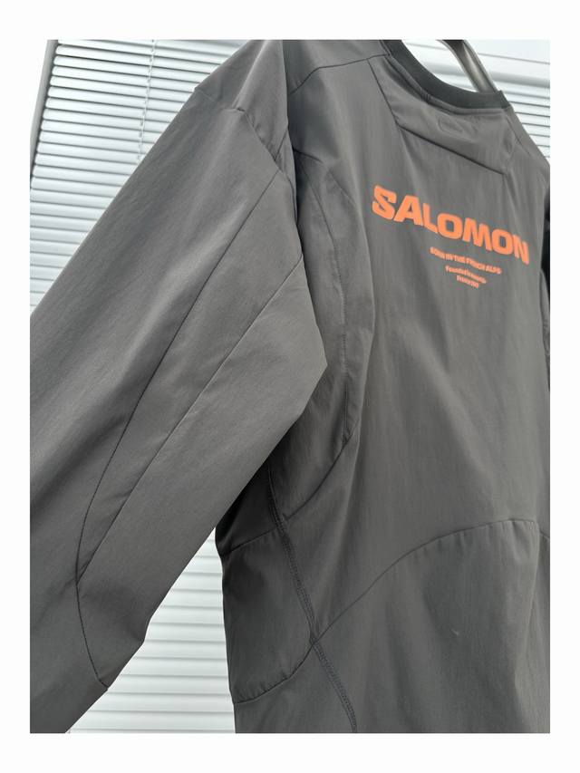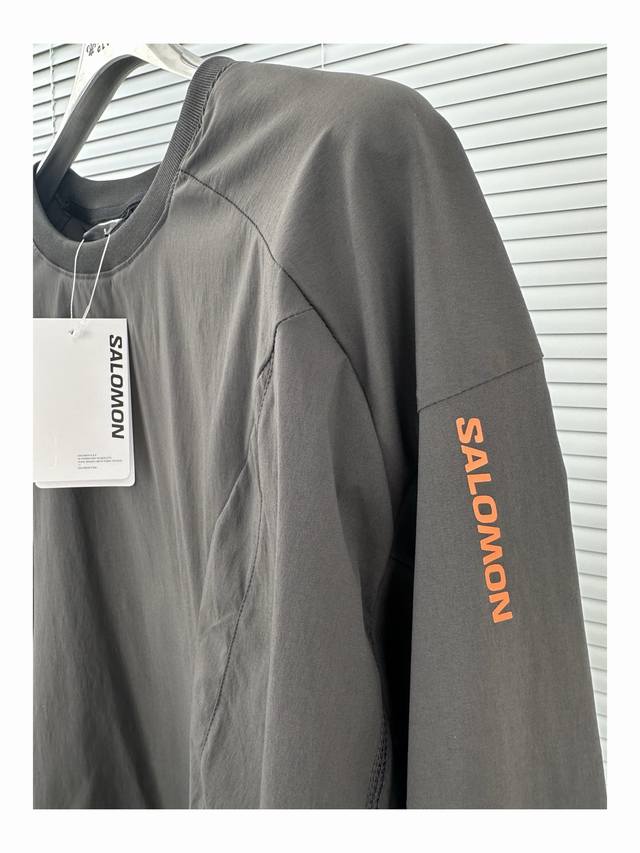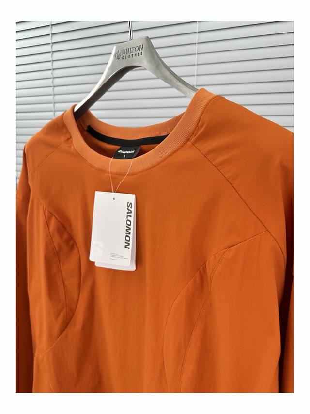 Salomon functional sweatshirt in orange, charcoal, and dark gray, size S-XL. Also worn by Bai Jingting! Salomon's classic, functional, casual, and sporty Slate Korean-made, round-neck, loose-fitting, long-sleeved sweatshirt for men and women. Main fabric: Crafted from the same high-quality blended fabric as the original, this 97% nylon and 3% polyurethane spandex blend offers both softness and stretch, ensuring comfort and freedom of movement. Accessories: Developed from the original, custom-made small labels, collar tags, washing, hang tags, and hardware. Loose fit: The loose fit aligns with current fashion trends while providing ample room for movement, ensuring comfort for both everyday wear and outdoor activities.