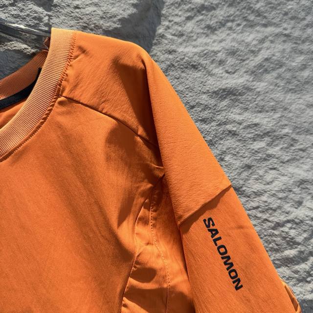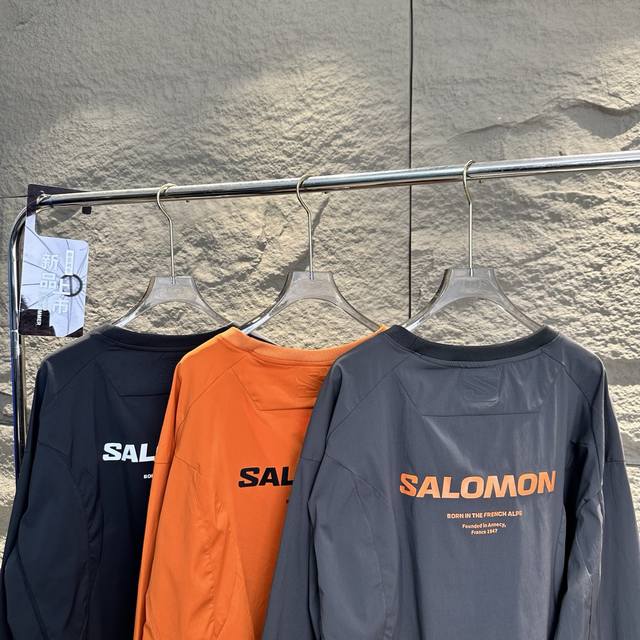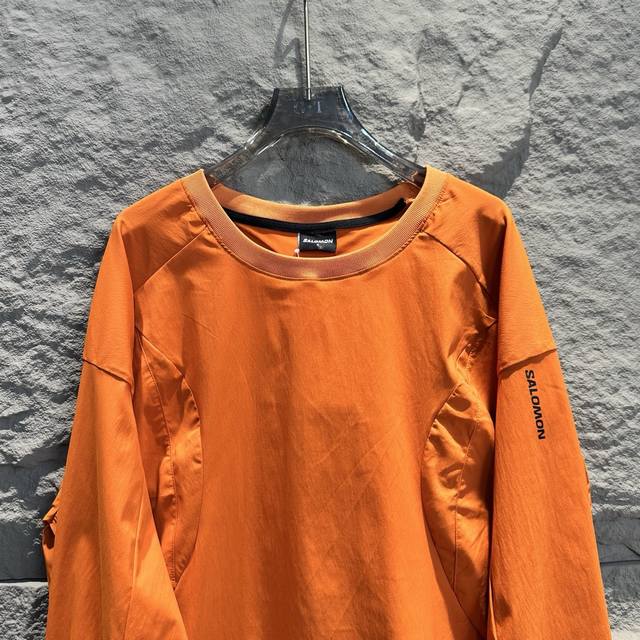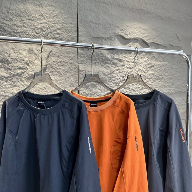 Salomon Slate series functional crewneck sweatshirt (recently worn by Bai Jingting). This series combines Korean avant-garde functional design with the brand's professional outdoor DNA, releasing a futuristic and technologically advanced color-blocking impact. It features Gore-Tex Windstopper windproof stretch woven fabric, low-saturation colors, unconventional Asian-Fit tailoring, and a fit more suitable for Asian body types. The adjustable hem brings a more sophisticated outdoor fashion aesthetic to outdoor enthusiasts. Colors: Black, Gray, Orange. Sizes: S-XL. Length: 69cm, 71cm, 73cm, 75cm. Chest: 116cm, 124cm, 128cm. Shoulder Width: 61cm, 62.5cm, 64cm, 65.5cm. Sleeve Length: 56cm, 57cm, 58cm, 59cm.