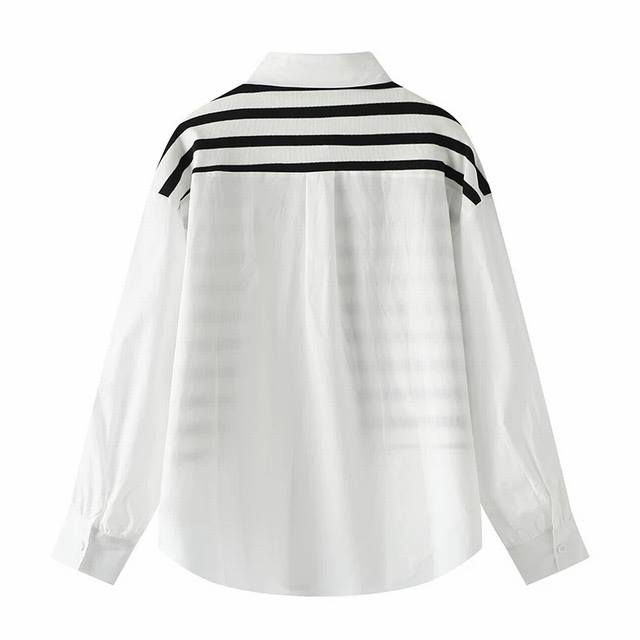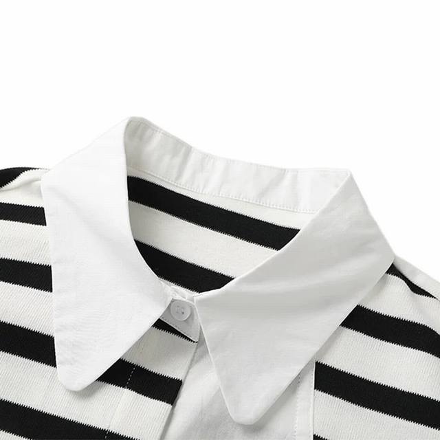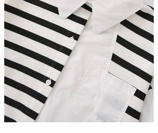 Sandro shirt black and white striped patchwork shirt women's design loose shirt top, contrasting striped patchwork shirt | Unlock your personality style