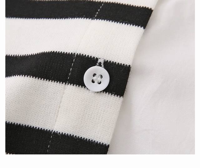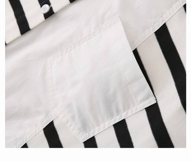 Classic black and white stripes collide with simple pure white, the patchwork design is super clever ~ lapel + single-breasted, casual and a little neat. The loose version is friendly to all body shapes. Whether worn alone or layered, you can easily create different styles. It is suitable for commuting and going out, and the fashion level is directly maximized~