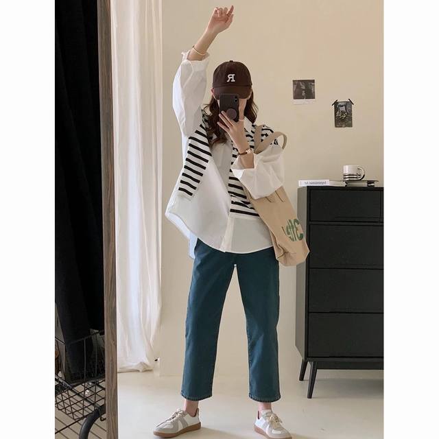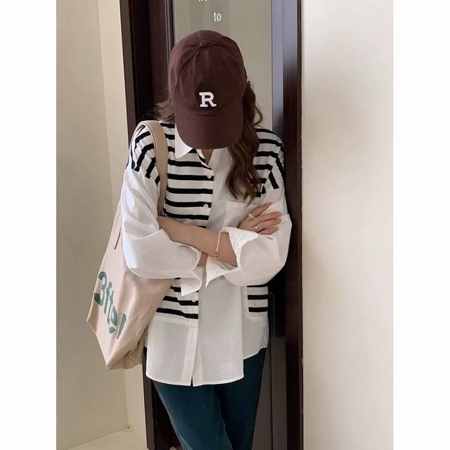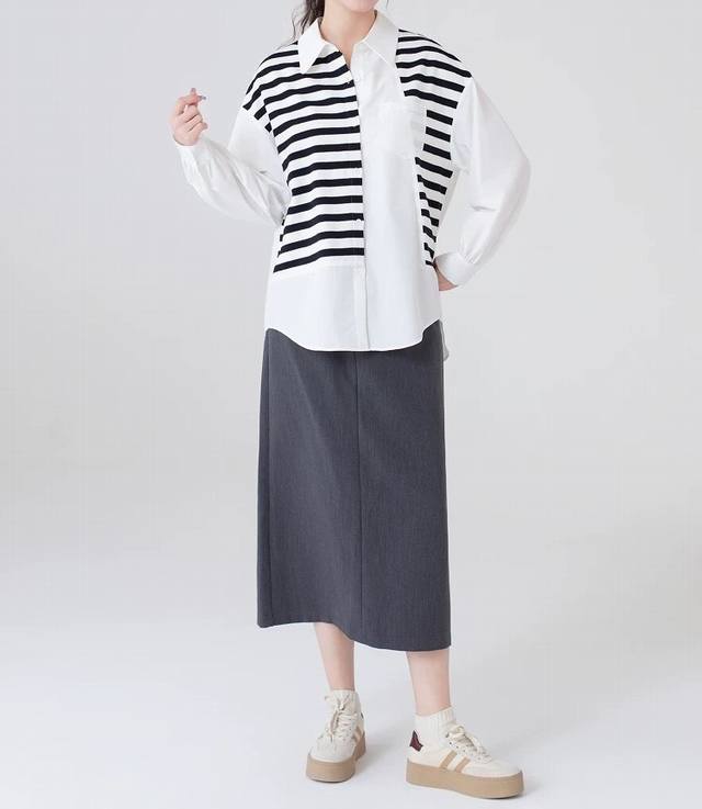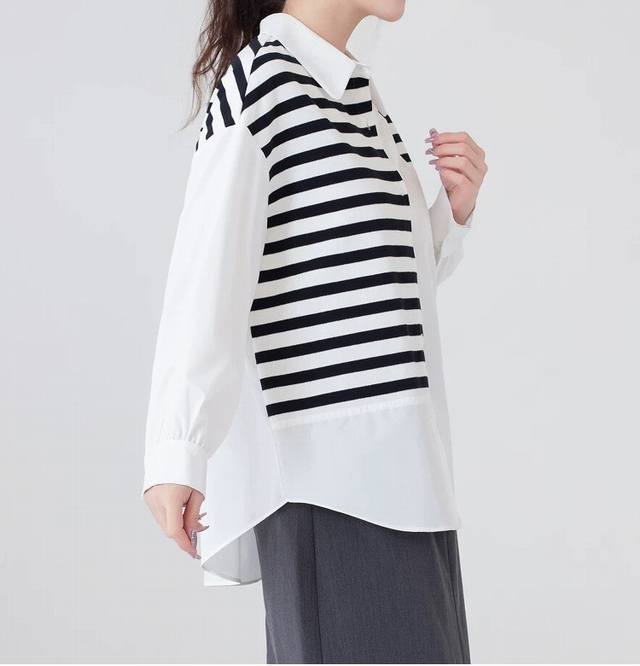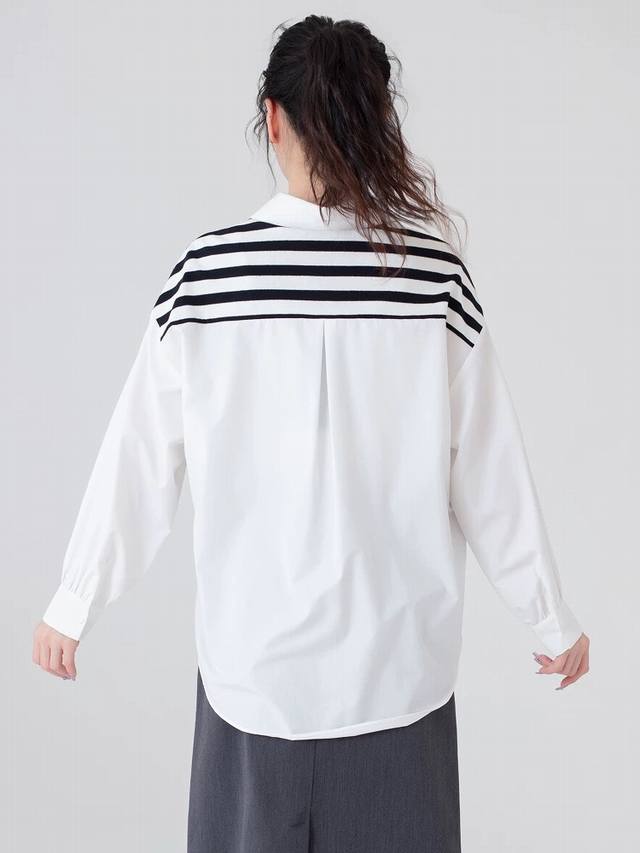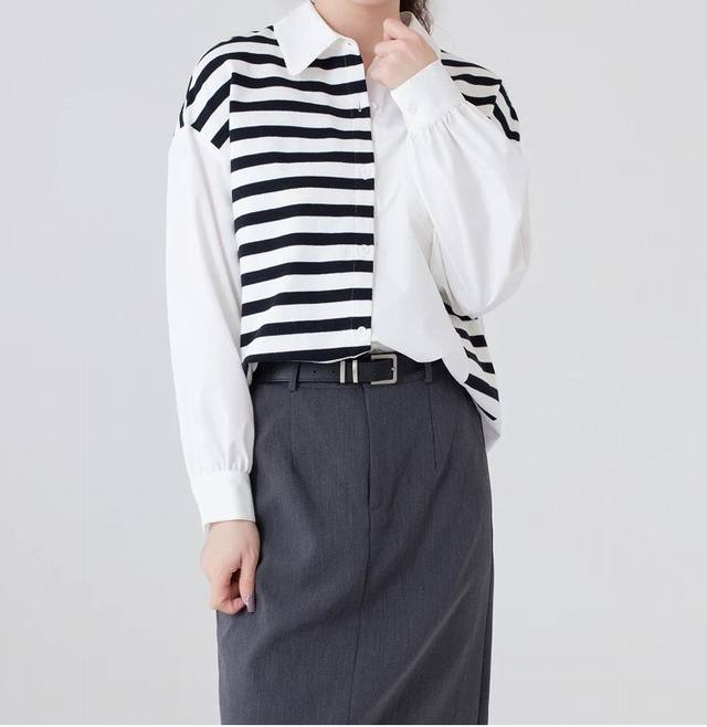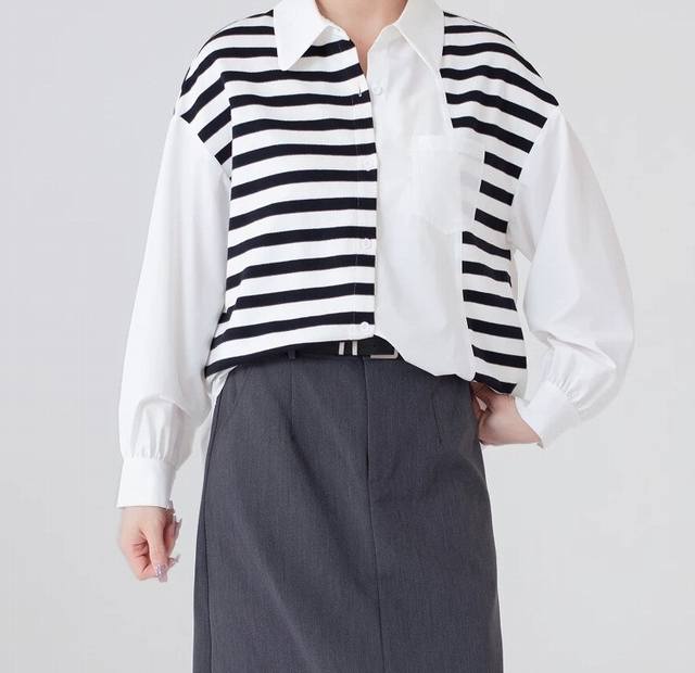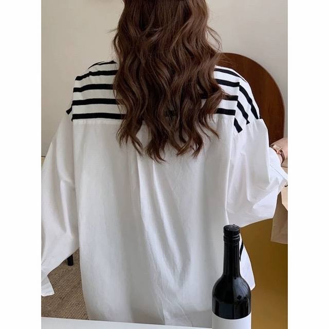 Sandro shirt black and white striped patchwork shirt women's design loose shirt