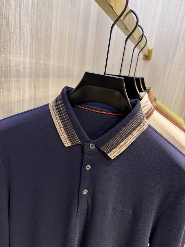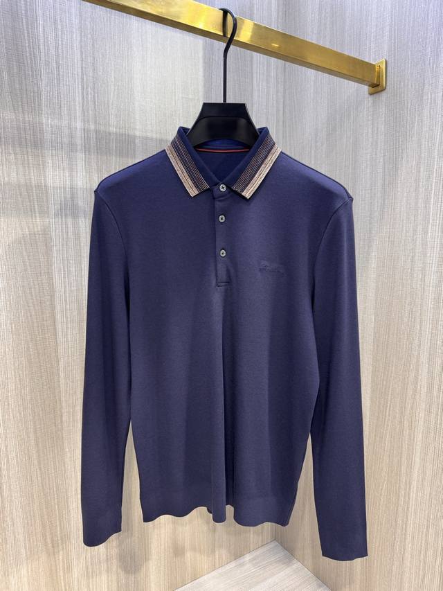 Sg Lp's latest 2025 Autumn/Winter men's long-sleeved T-shirt with embroidered logo and polo collar. Featuring a traditional polo collar design, simple and elegant, with a touch of business style. The collar has an elegant striped design, paired with the iconic Lp logo embroidered on the chest. The color scheme, seemingly understated and minimalist, delivers an extraordinary sense of sophistication and high brand recognition. It offers excellent comfort against the skin, is elastic, has a glossy finish, and maintains a crisp, shapely silhouette without wrinkling or deformation. The clean lines and simple design exude taste and style, and it's incredibly versatile and timeless. It easily handles both business and casual occasions, looking great worn alone or as a base layer. Effortlessly create a sophisticated urban gentleman look!