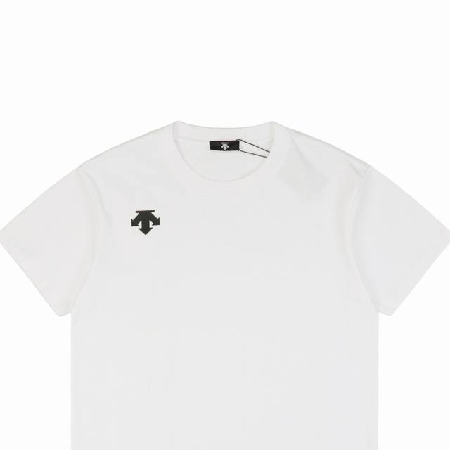 Short sleeves with slogans and multiple logos printed on the back The fabric is