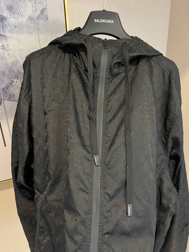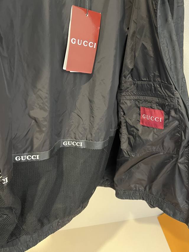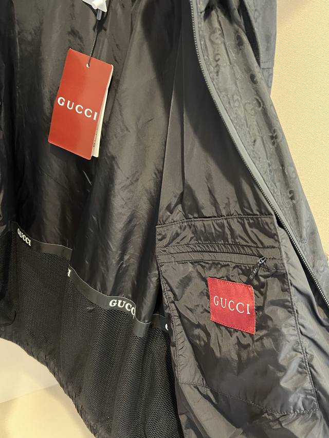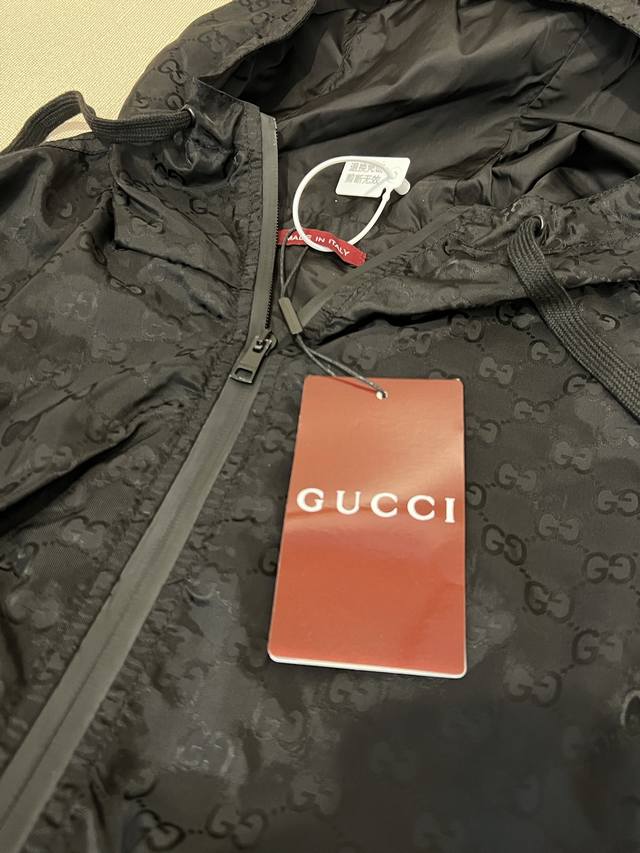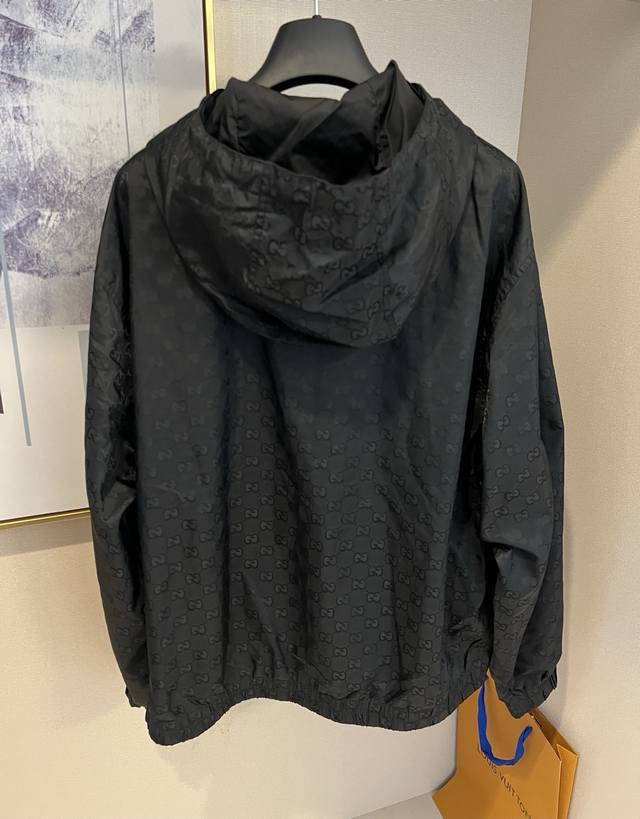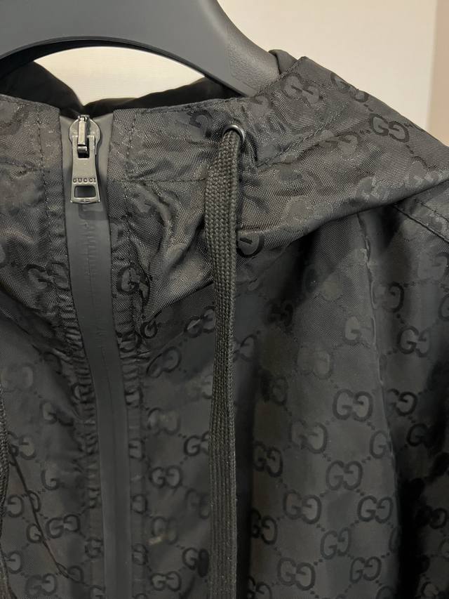 Size: SMLXL Unisex G*Ci Lido Lightweight Gg Nylon Hooded Zipper Jacquard Jacket. Inspired by the alluring seaside clubs along Italy's legendary coastline, this jacket from the G*Ci Lido collection conveys the captivating charm of seaside life. Crafted from lightweight Gg nylon jacquard fabric, this jacket offers a fresh interpretation of the classic monogram pattern inspired by the initials of the brand's founder, Gu*Cio Gu*Ci. Fabric and hardware: Dry clean or hand wash in a laundry bag in cold water.