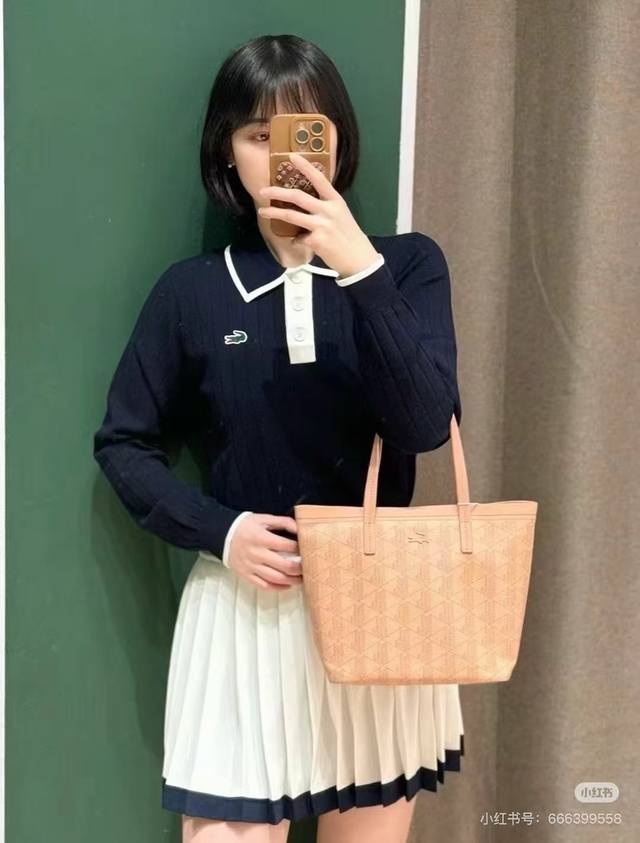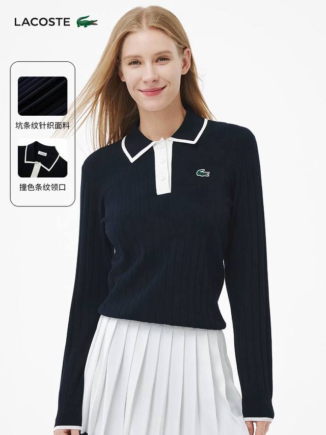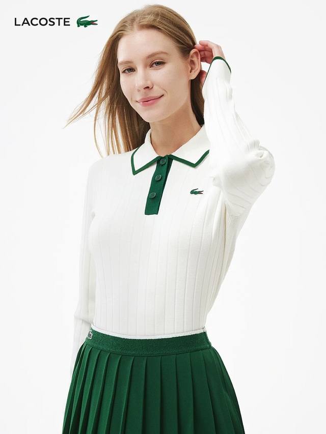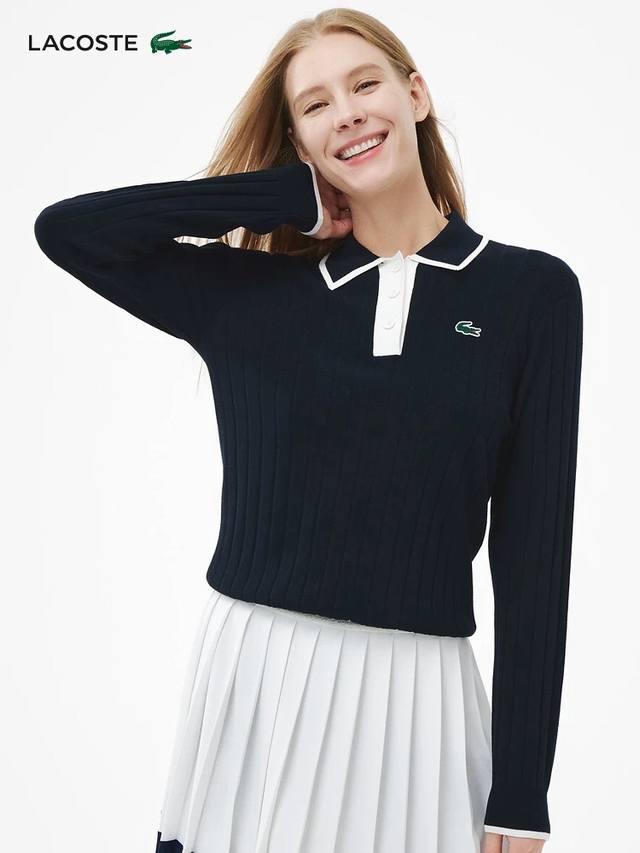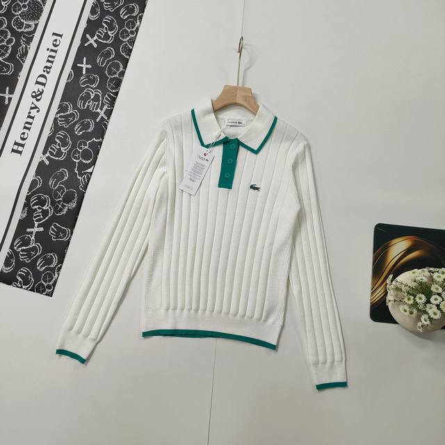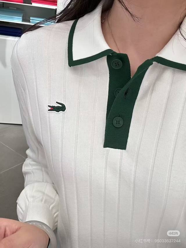 The classic crocodile logo on the chest and contrasting stripes on the collar, cuffs, and hem embody the brand's classic sporty and casual style.