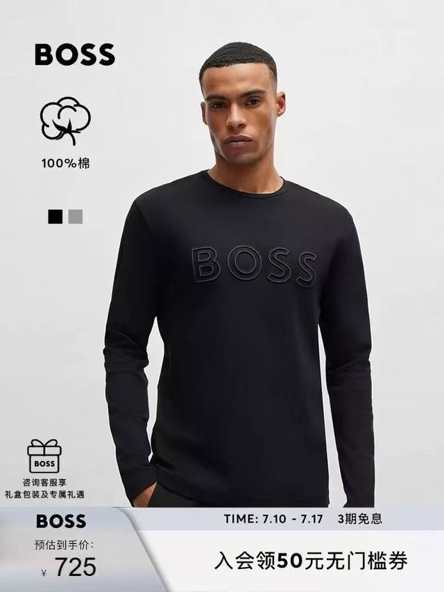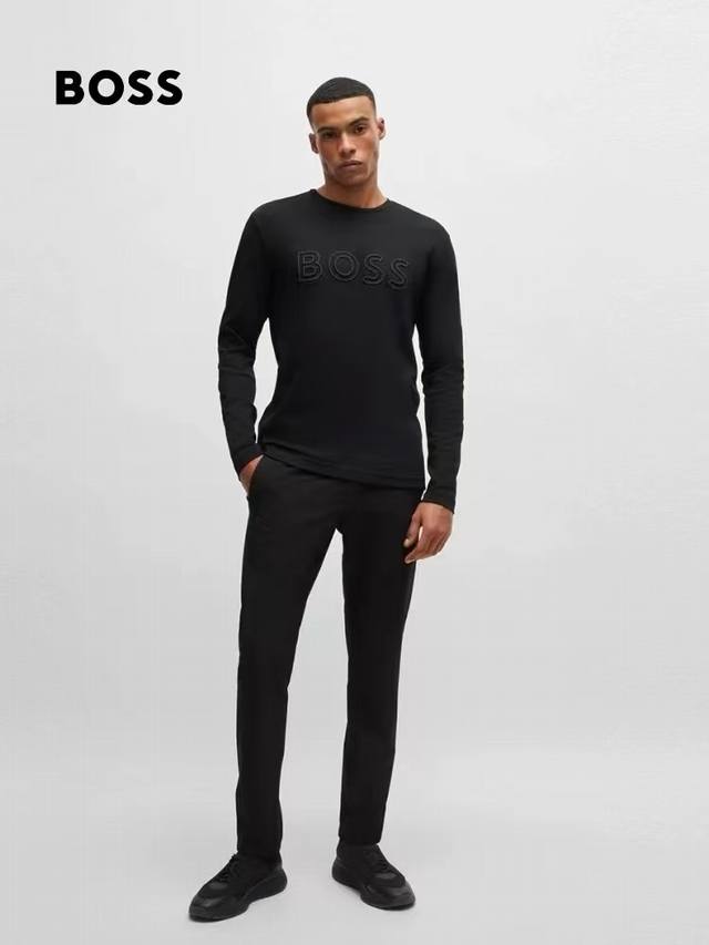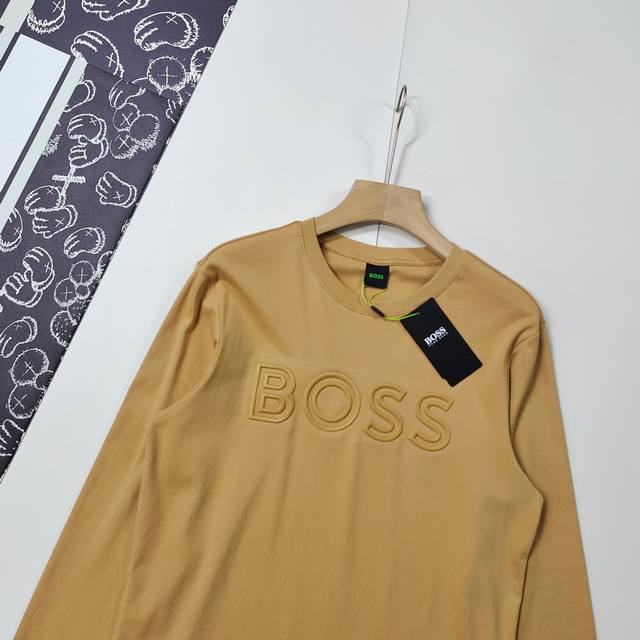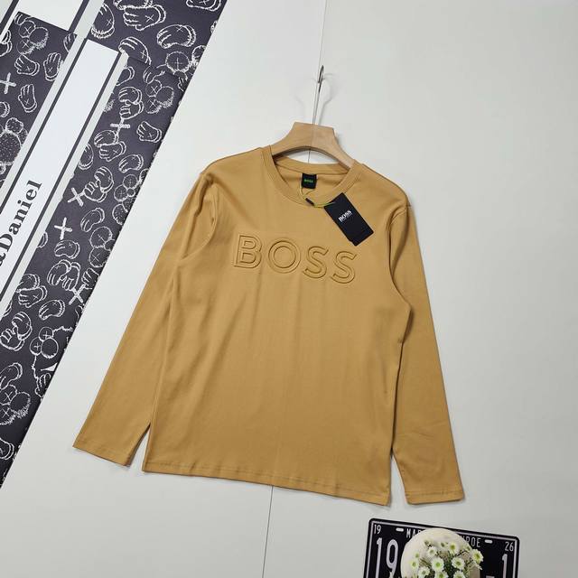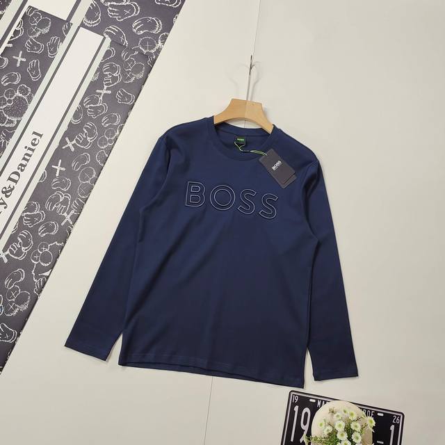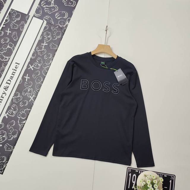 Sizes M-2Xl. 2025 Fall/Winter Boss long-sleeved T-shirt with a 3D logo print. A basic couple's style.