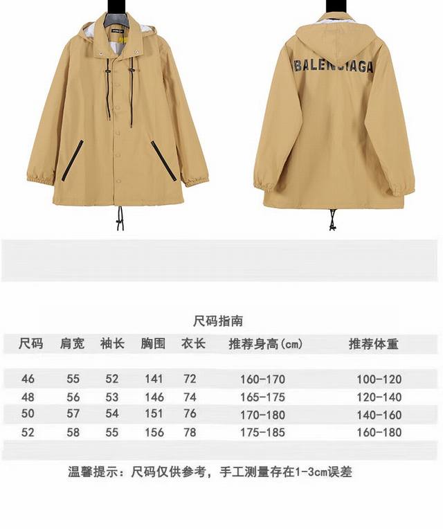 Special Price Yuan, Original Price Ddd Remaining Stock: S 2 M 4 L2 Ddd Special Price, No Returns or Exchanges, Please Do Not Purchase if You Mind Ddd Blcg Waterproof Windbreaker Jacket with Back Logo Ddd Among the windbreaker jackets currently available, this one boasts the best quality and style, the most unique color scheme, and exceptional functionality and practicality. Blcg's heavyweight design this year has caused a huge stir in the fashion world. A comprehensive analysis reveals a near-perfect heavy-duty garment made with advanced technical fabrics. The surface is treated with water-repellent technology. The concealed zipper hood and loose-fitting OOS cut are perfect for current trends, offering a lightweight and comfortable wearing experience. It perfectly blends everyday style with outdoor sports. The back features a fully taped logo with high-temperature treatment to resist violent tearing. This all-around functional jacket suits all styles and body types. Most importantly, the quality is superb! Ddd Sizes: 46 48 50 52 DDD
