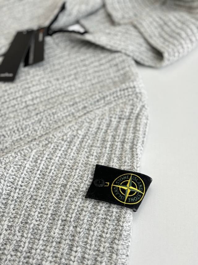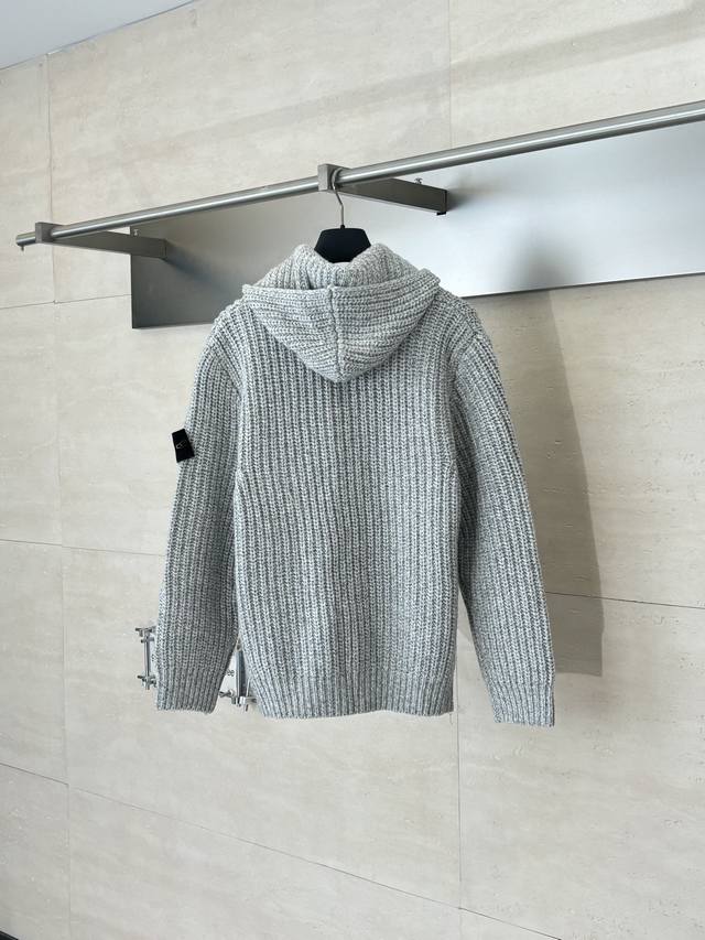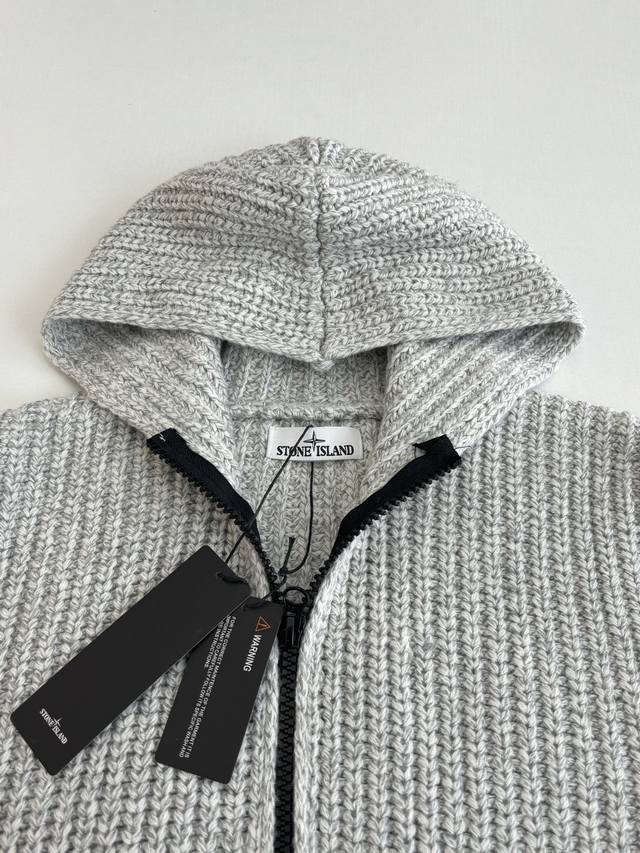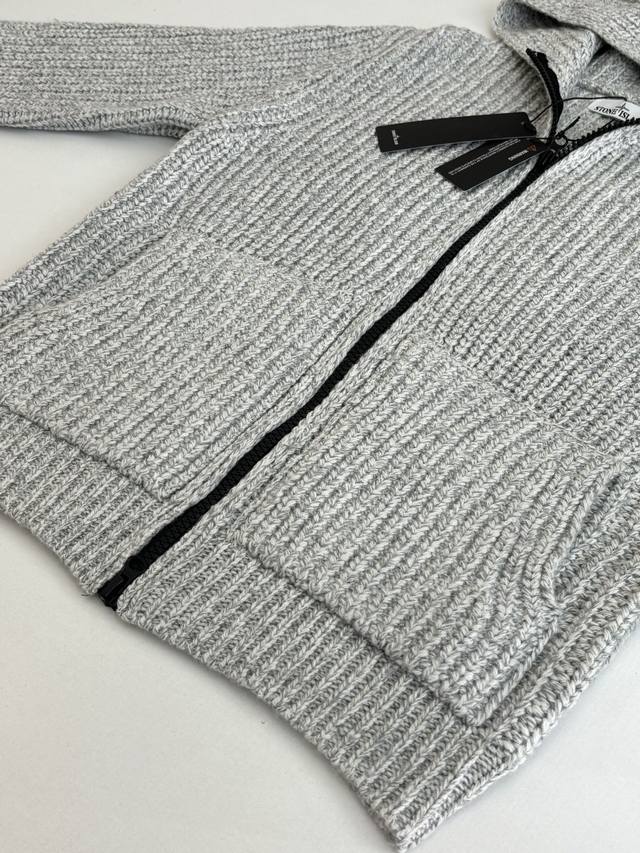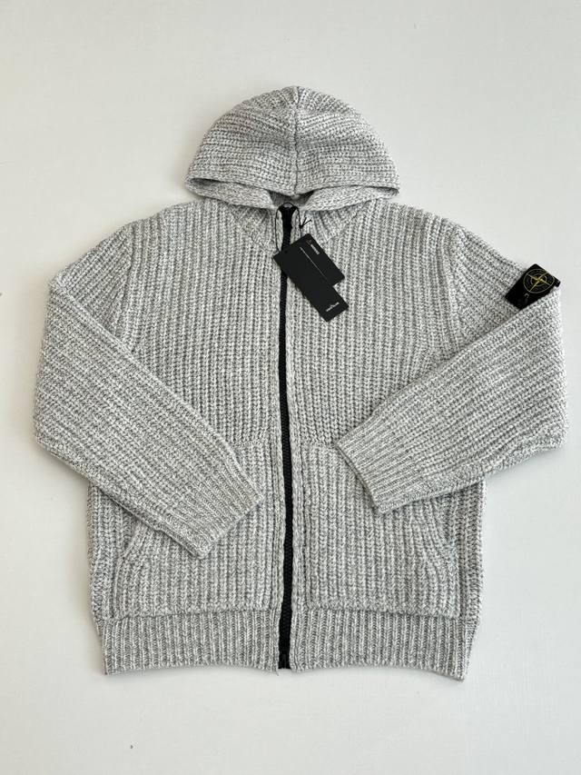 Stone Islan* Stone Island Chunky Knit Sleeve Logo Knit Zip-Up Jacket DDD Size: SML XL DDD