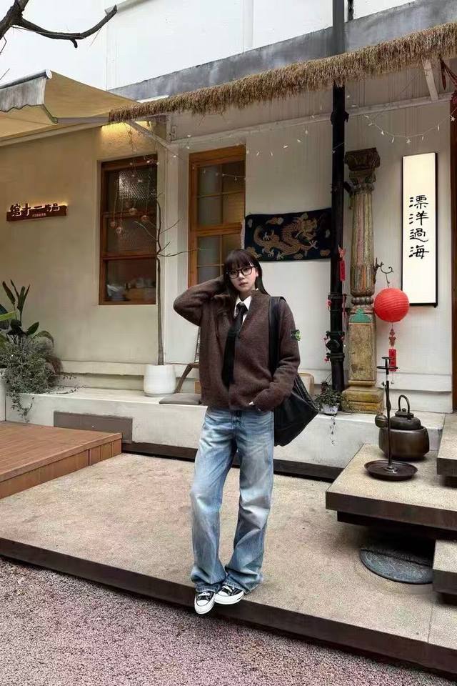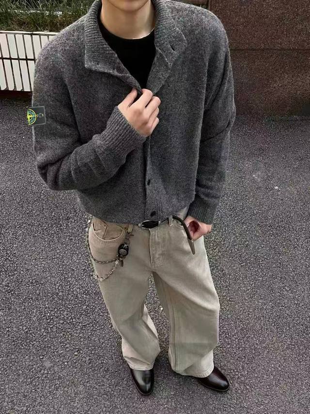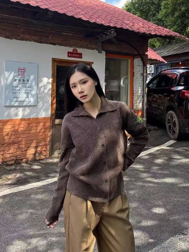 A classic vintage sweater with a relaxed, laid-back vibe. A gentleman's elegance often lies in the details and quality of his work. This Old Money Amber Floral Yarn Sweater captivates me at first sight with its mottled floral yarn and wool. It's crafted in this autumn's trendy amber sheen colorway, a truly elegant touch. Made from high-quality floral yarn and wool, it even has a wood chip texture up close. The half-turtleneck design provides warmth and windproofing while also shaping the neckline. The straight-shoulder design further enhances the look. The fabric is soft without sagging, yet maintains a crisp feel. Unbuttoning allows for a relaxed cardigan, showcasing the classic Stone Island badge and armband logo. First released online, manufactured by a major manufacturer, with a complete line of accessories.
