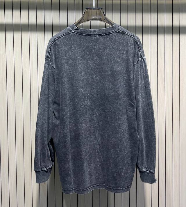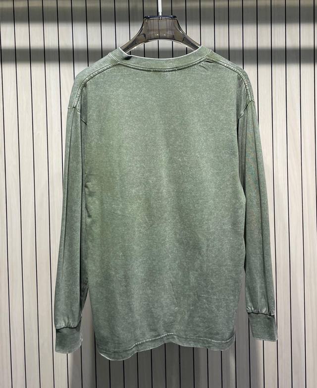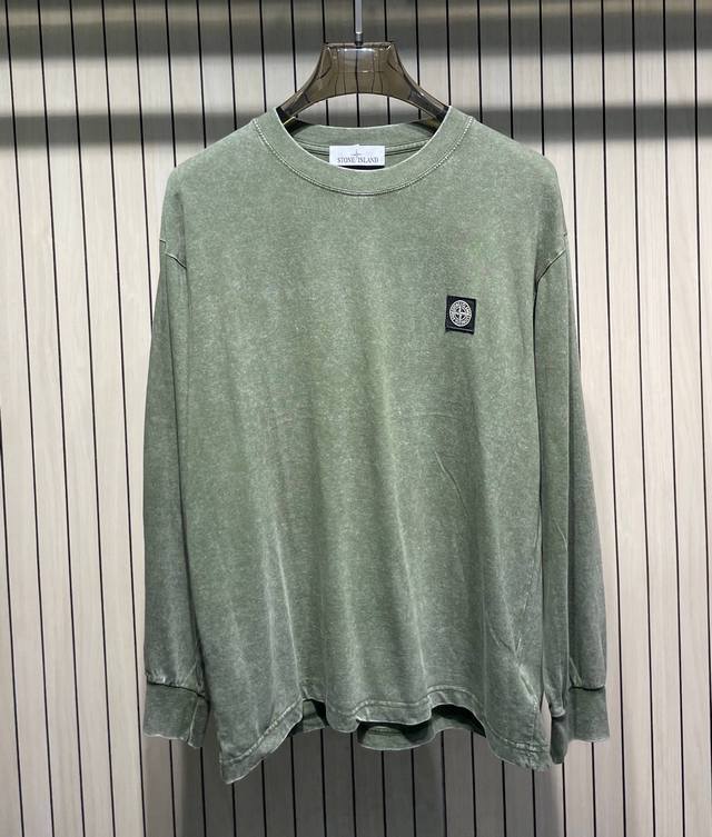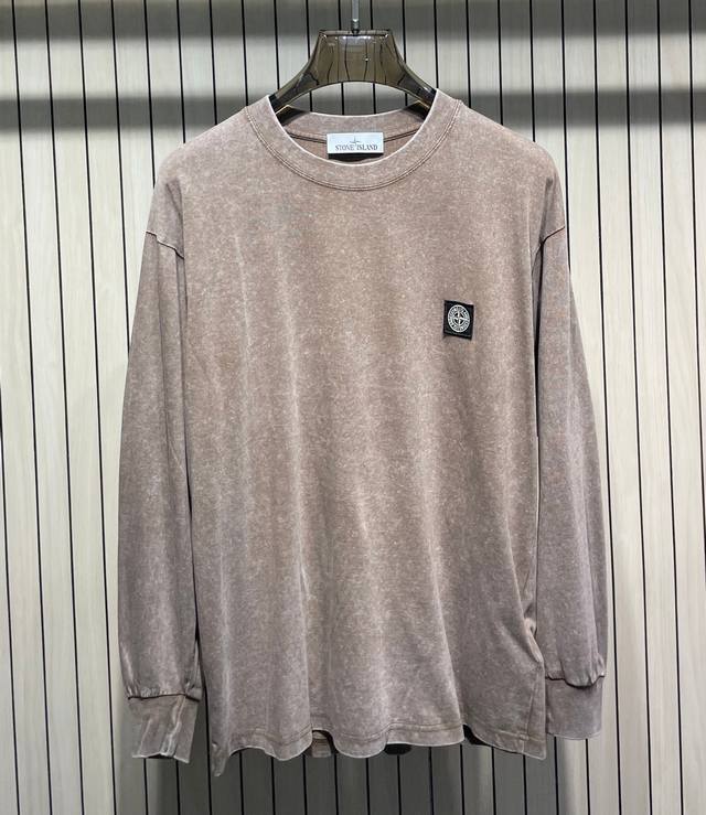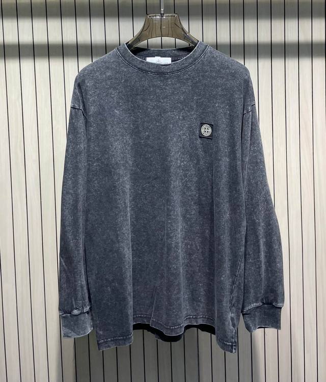 Stone Island Classic Badge Washed Distressed Crew Neck Long Sleeve T-Shirt Colors: Black, Brown, Rose Red, Green, Gray Sizes: M-4XL