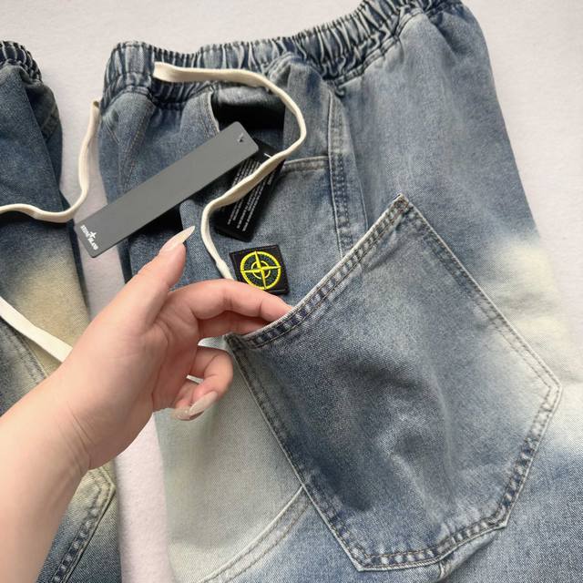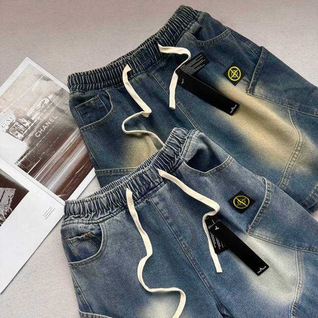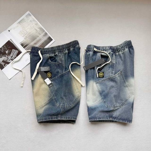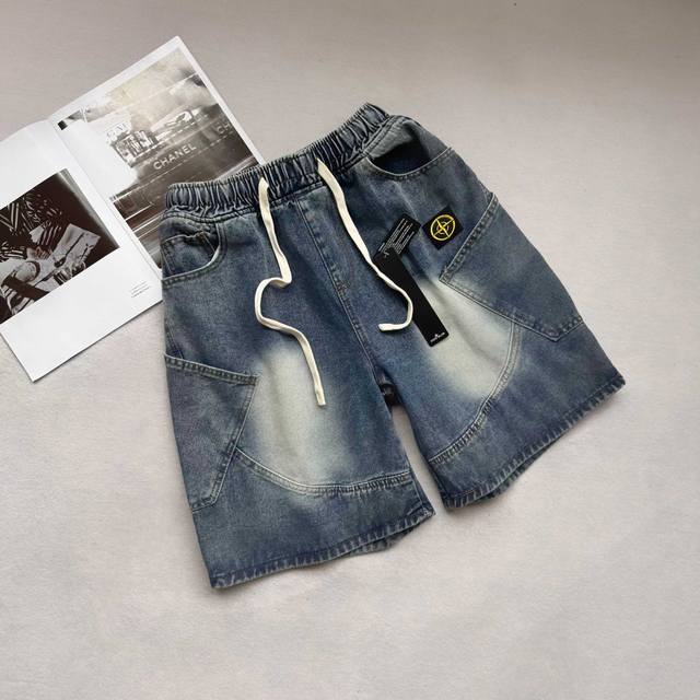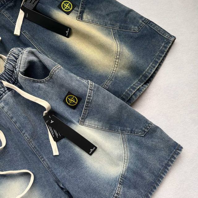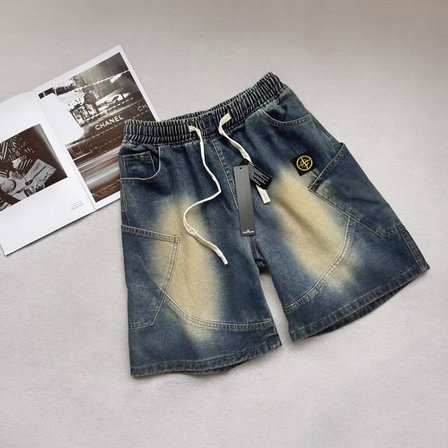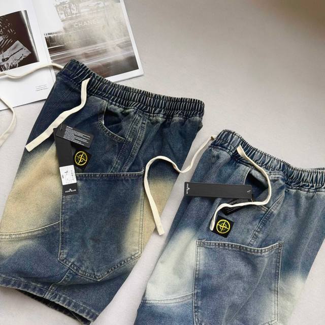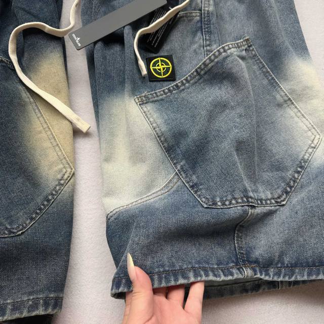 Stone Island latest American retro washed denim shorts shorts Street-blasting pa