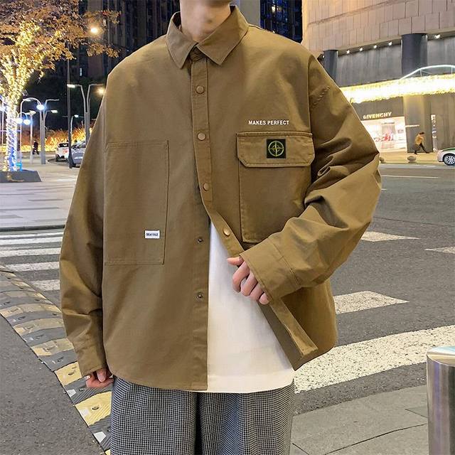 Stone Island Spring overseas official website solid color basic style textured shirt jacket, unisex style, Instagram, Douyin, Weibo, major internet celebrities have worn it, the version is beautiful, the upper body is stylish, and it modifies the perfect figure. The exquisite tailoring and the details are exquisite and unambiguous. Highly recommended!