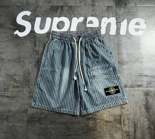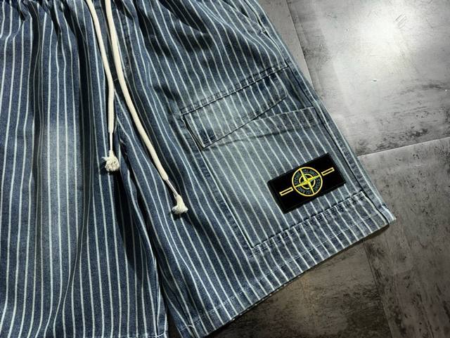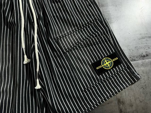 Stone Island striped heavy-duty retro style retro casual couple shorts The fabri