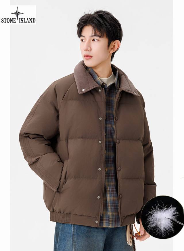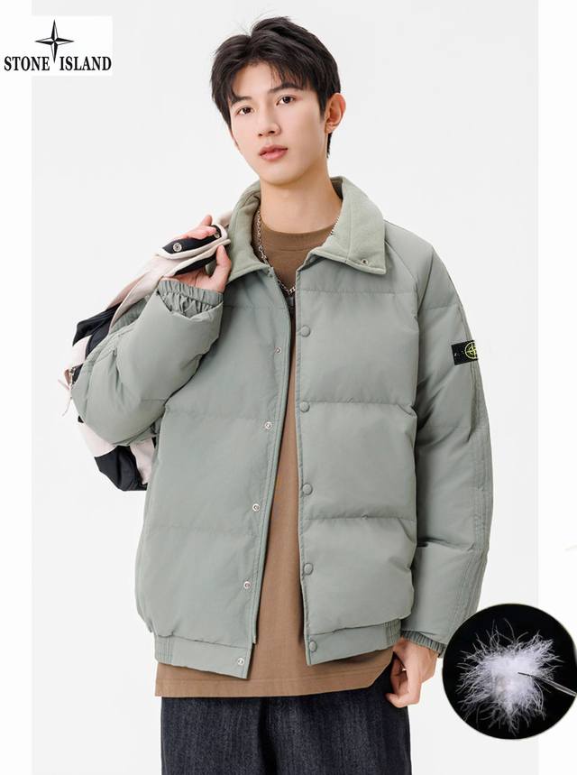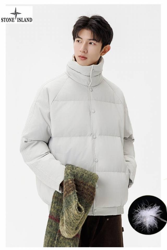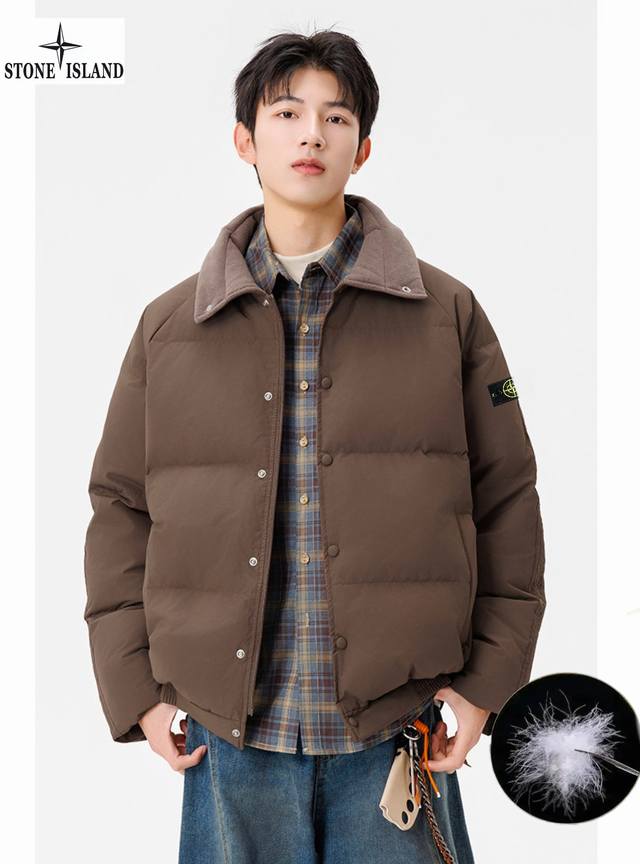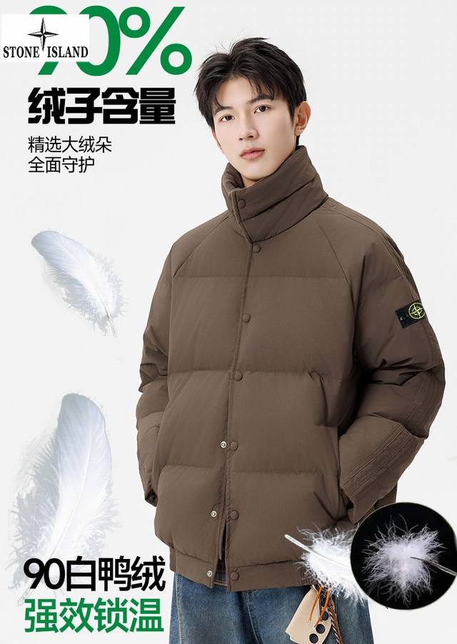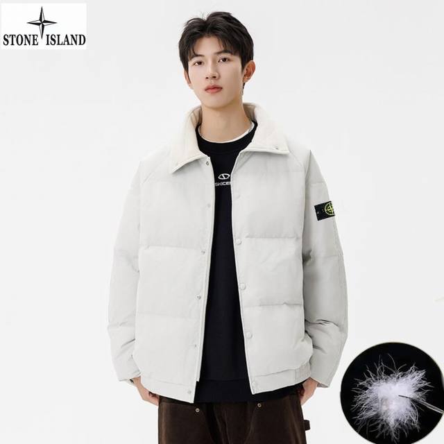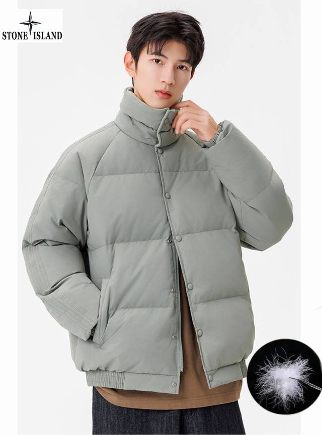 Stone Island Winter New Arrival, Unisex Stand Collar Lightweight Stone Island Down Jacket. Made with top-grade windproof and waterproof fabric and precision seam sealing technology, it completely blocks wind and snow. High-quality down filling locks in core warmth, specially designed for harsh outdoor conditions. Every detail is designed to protect you during your extreme adventures. Colors: Off-white, Green, Brown, Black.