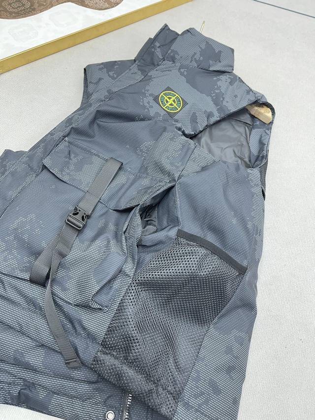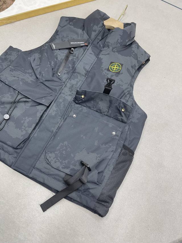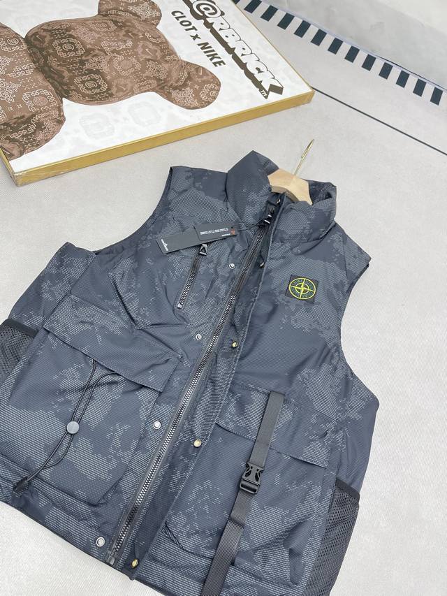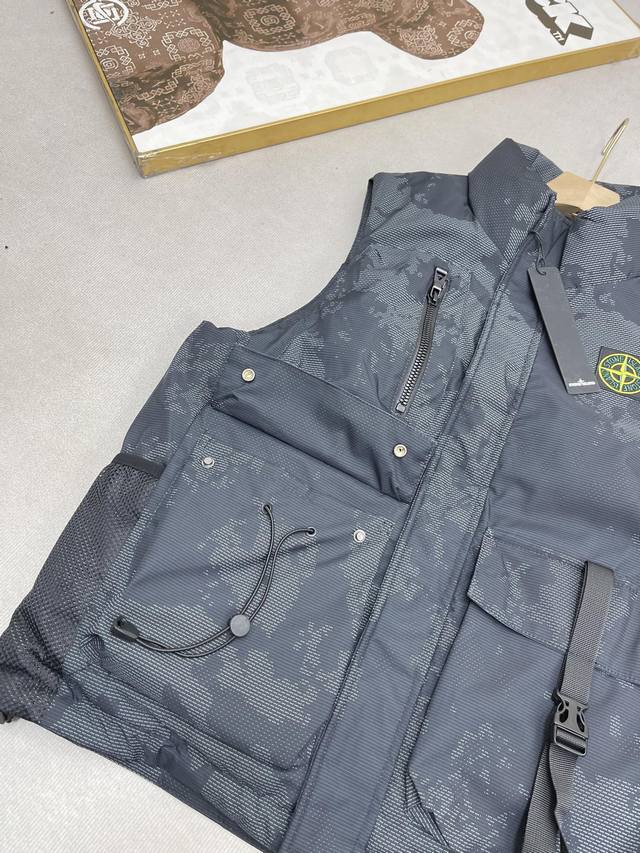 Stone Island Winter New Medal Pocket Tactical Down Cotton Vest Outdoor Functional Large Pocket Vest