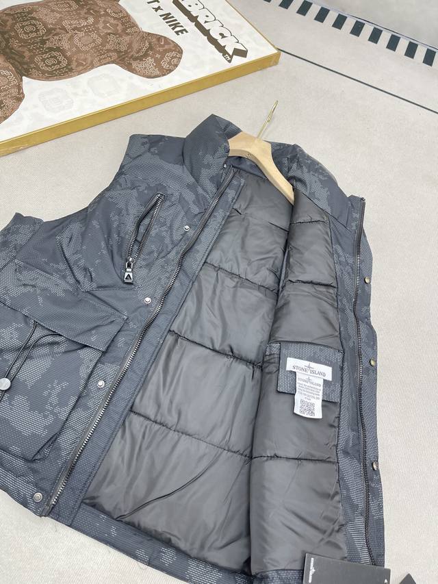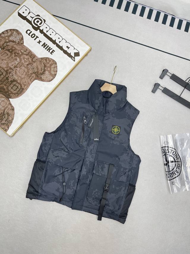 Stone Island Winter New Medal Pocket Tactical Down Cotton Vest Outdoor Functional Large Pocket Vest