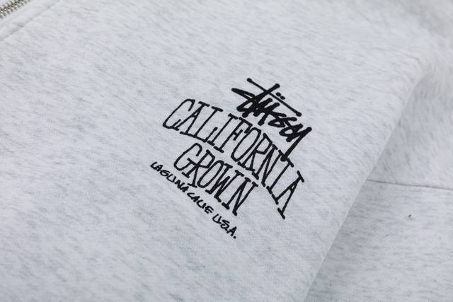 Stussy 25Fw Cali Grown Zip Hoodie with English Print on the Back - Couple Hooded Fleece Zip-Up Sweatshirt - Highest Quality on the Market Color: Gray, Black Size: S, M, L, XL Number: 25920 Exclusive Custom-Made Original 400G Pure Cotton Fabric Clean Fabric with Clear Texture Comfortable to the Touch Ribbed Dyeing with No Color Difference Original Fit Loose Fit with Exquisite Cutting for Unisex Wear The Print Uses Environmentally Friendly Imported Plastisol Printing High Temperature Setting for Extremely High Durability and Won't Fade After Washing The Official Website's Latest Full Set of Custom-Made Accessories, Washable Labels, Hang Tags, Packaging Bags, etc., are All Included, Truly a 1:1 Authentic Replica! Stussy's designs are deeply influenced by surf culture and beachwear, and have since become one of the iconic items of hip-hop culture and streetwear that have swept the globe. Stissy's designs exude a minimalist and unpretentious aesthetic, while also interpreting contemporary culture and trends. Its ready-to-wear collection embodies a lifestyle that is both desirable and attainable. Printed T-shirts, hoodies, and sportswear are all adorned with the brand's signature logo, radiating the brand's familiar casual vibe; classic outerwear is elevated through playful design details while remaining true to the brand's classic aesthetic principles.