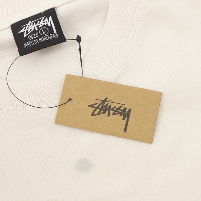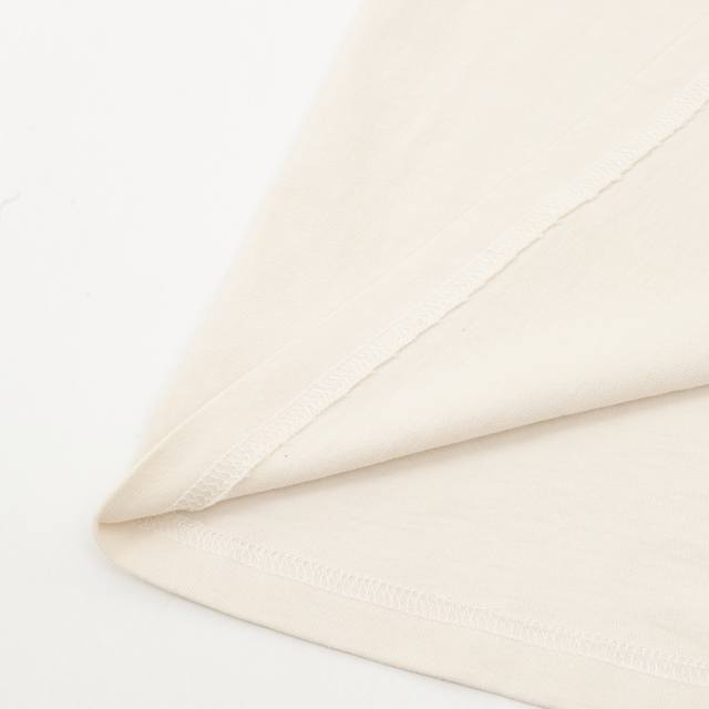. The irregular, blurred pattern creates a dynamic aesthetic. The fabric is custom-woven and custom-dyed, weighing 220% cotton. Cylindrical fabric is a knitted fabric woven on a circular loom. The needles are arranged in a cylindrical pattern on the loom. The greige fabric is a large cylinder that needs to be slit and shaped before further use. There are no slits on the sides, unlike the typical short-sleeve side care labels, only a collar label on the back of the collar. Printing uses imported thermoset ink, unlike conventional thermal transfer inks, also known as plastic inks or self-adhesive inks. Its main ingredients are polyvinyl chloride (PVC) and phthalates. This thermoset ink is a mixture of PVC, phthalates, a fixing agent, a stabilizer, and a thickener. It's not the commercially advertised digital direct-injection thermoset ink, and its print quality is unattainable with digital direct-injection. Custom collar and care labels are synchronized with the original. The sticker on the hangtag is coded