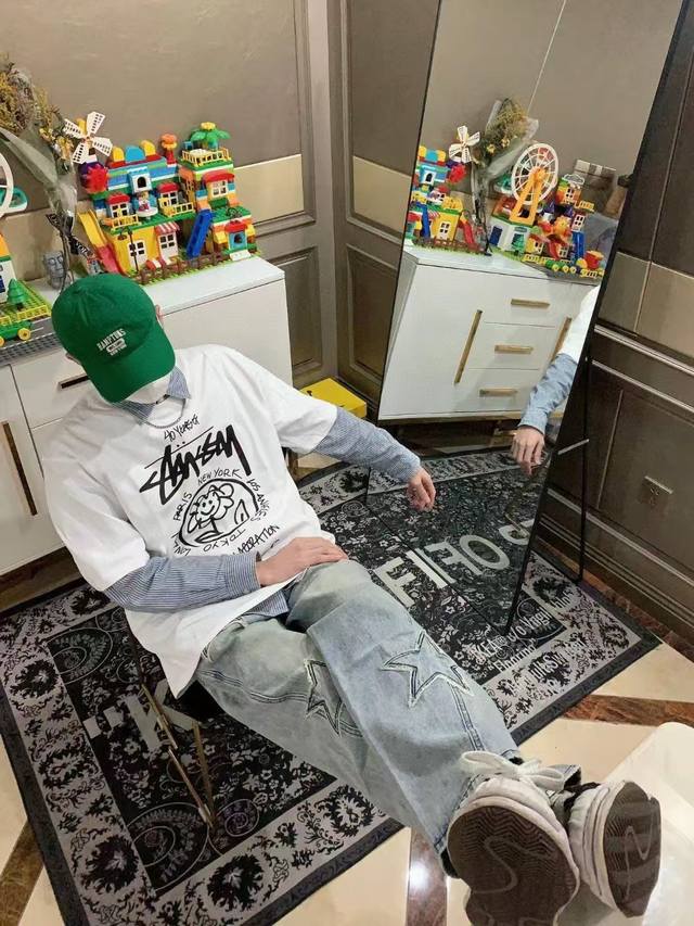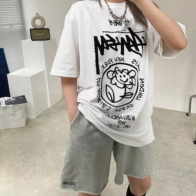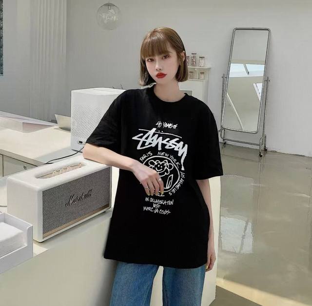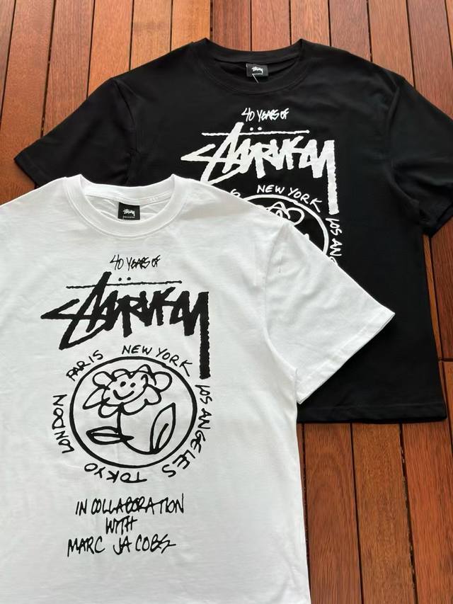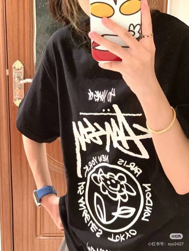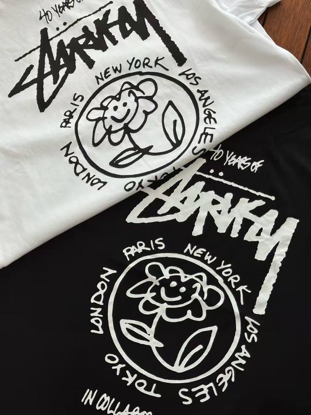 Stussy 25Ss flower print short-sleeved high version heavy-duty short-sleeved T-s