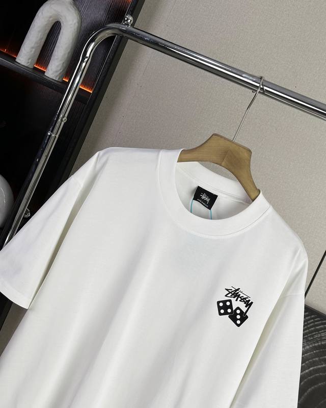 . Made of pure cotton 280G double yarn fabric, it feels delicate and soft, skin-friendly and breathable, with classic dice element Logo design on the front and back of the chest, novel and unique, it is classic and versatile with a full sense of fashion, imported machine printing, clear and sense of band, the whole piece is made of three-needle and five-thread technology, neckline-shoulder seam-sleeve seam-double pressure line, Oversize version, exquisite and perfect workmanship, a must-have versatile luxury item in summer
