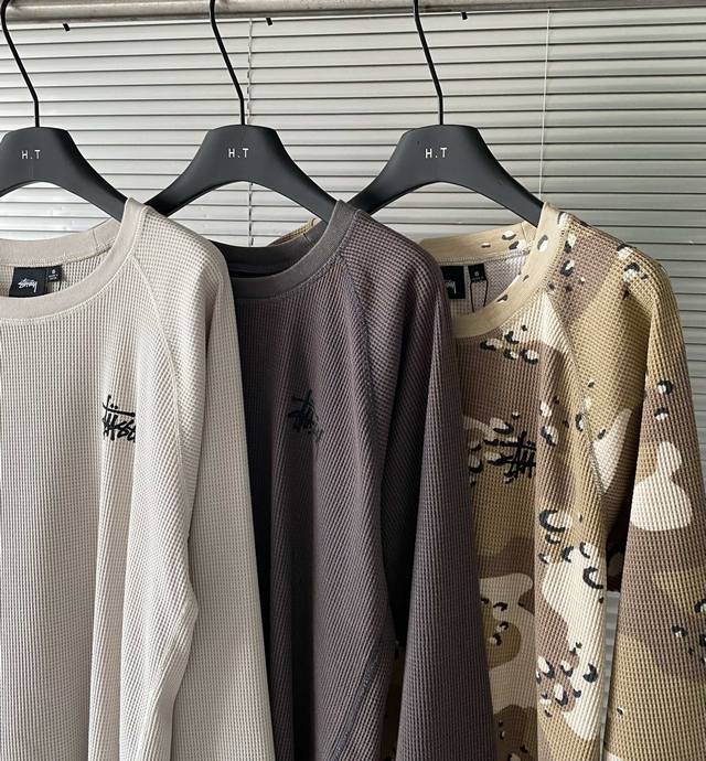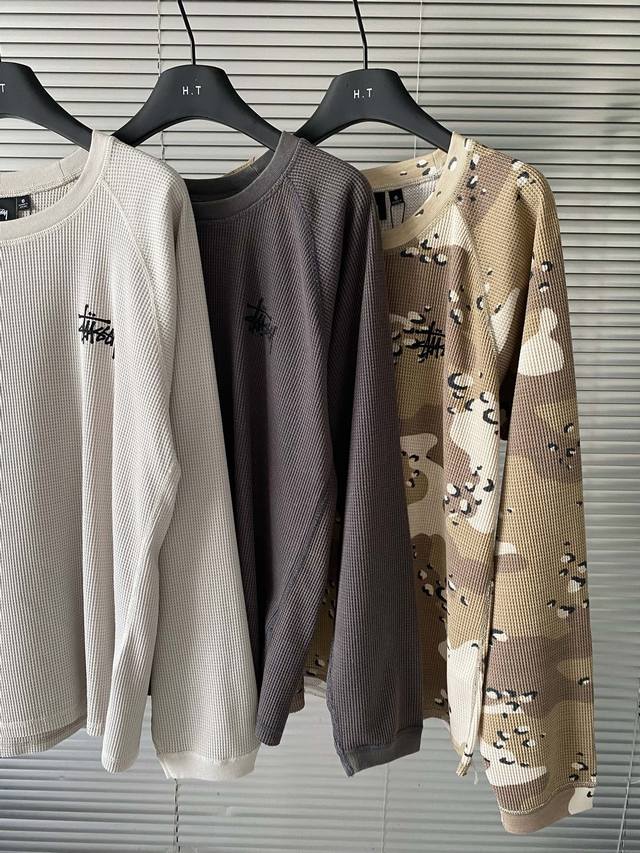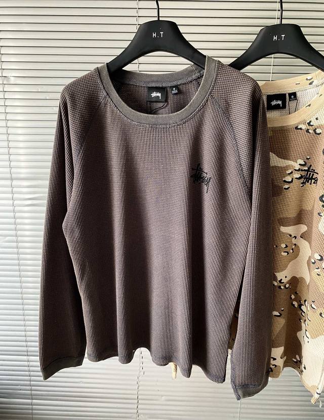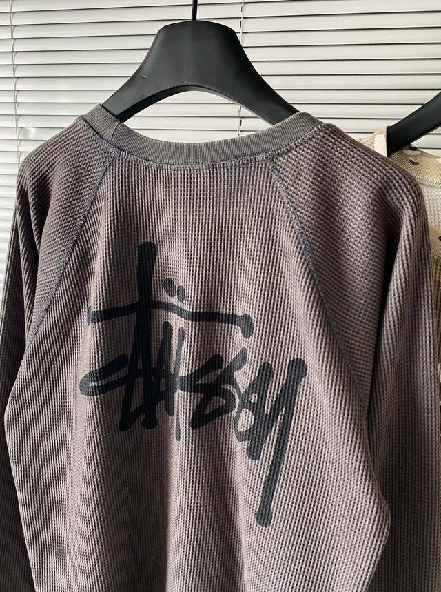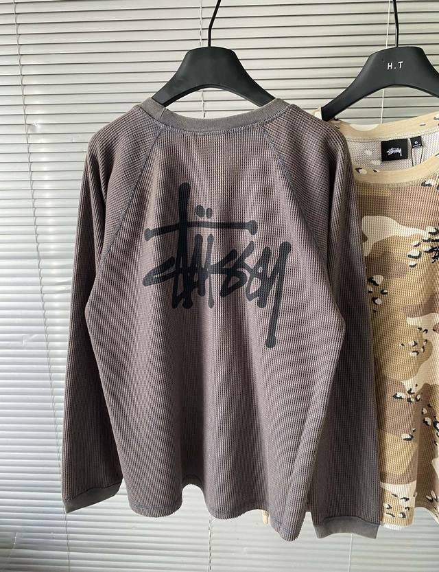 Stussy Autumn Collection Logo Design Raglan Sleeve Waffle Long Sleeve American R