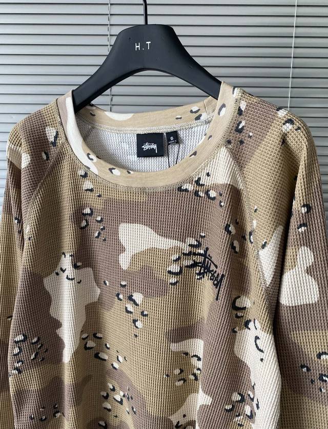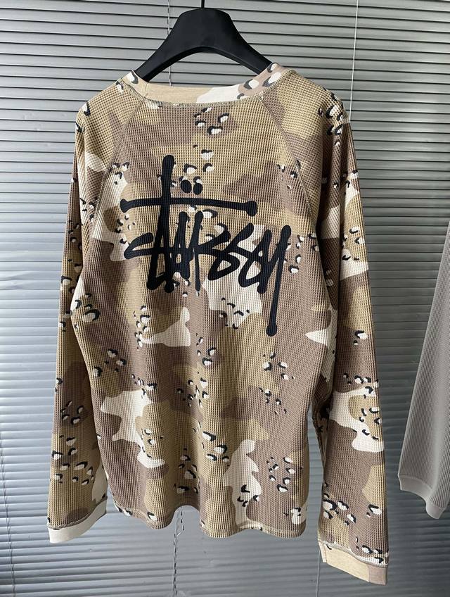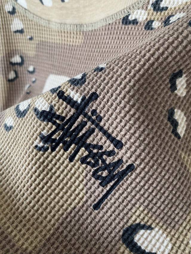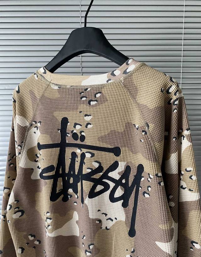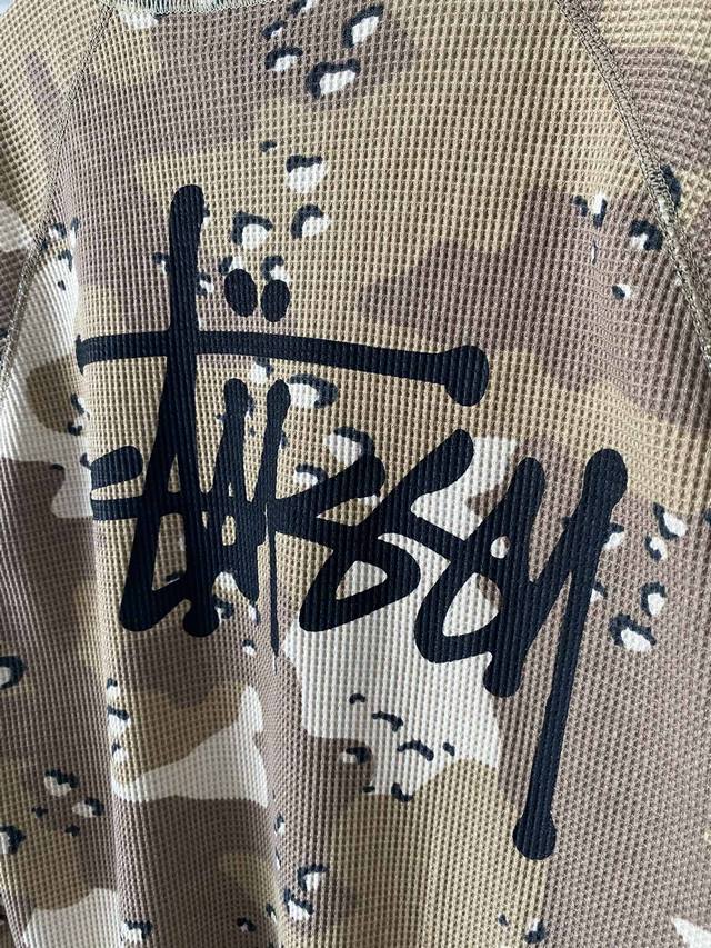 Stussy Autumn Collection Logo Design Raglan Sleeve Waffle Long Sleeve American R
