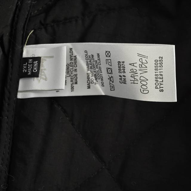 Stussy Black Eight-Billiard Quilted Liner Jacket