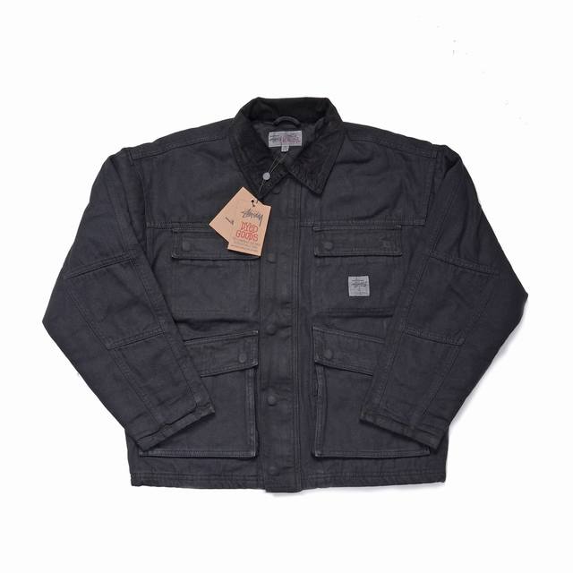 Stussy Fw23 Holiday Collection Ready-to-Wear Dyed Washed Distressed Corduroy Collar Work Jacket (