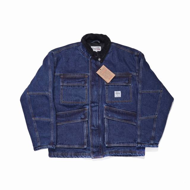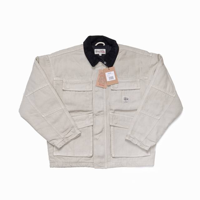 ) Superior Quality: The embroidered logo on the left chest is a finishing touch, echoing the brand's culture; all accessories are custom-made, maximizing authenticity and embodying the essence of the collection. It offers a clean fit and exudes style. Design Highlights: Classic corduroy collar + four-pocket workwear cut, perfectly matching Stussy's streetwear style; overall retro yet sleek, suitable for everyday spring and autumn outfits, easily creating a trendy look whether paired with a sweatshirt or as an inner layer. Size Reference: M for 110-130 lbs, L for 130-150 lbs, XL for 150-170 lbs, covering most body types for fashion enthusiasts. Colors: Black, Brown, Blue, Gray, White, Denim Blue. Sizes: M, L, XL. A Stussy workwear jacket that wins with its heavy-duty washed distressed finish and 100% cotton with added padding, combining retro and streetwear vibes