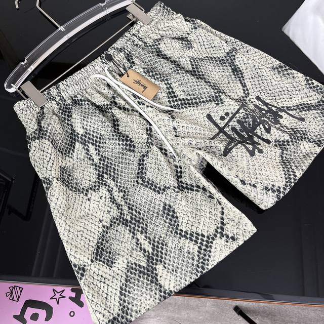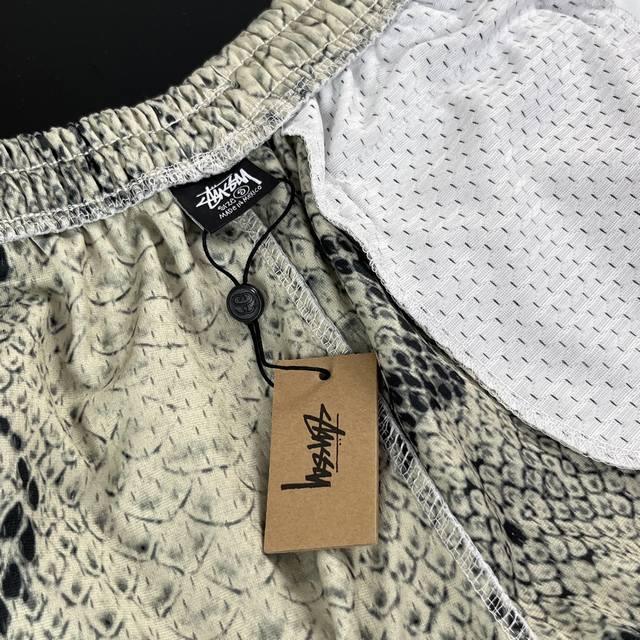 Stussy snake print shorts American fashion brand loose version elastic waist dra