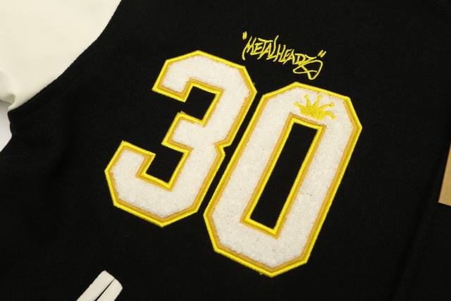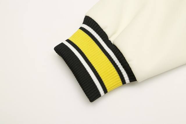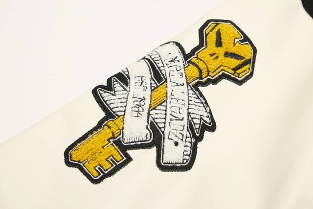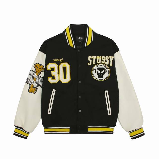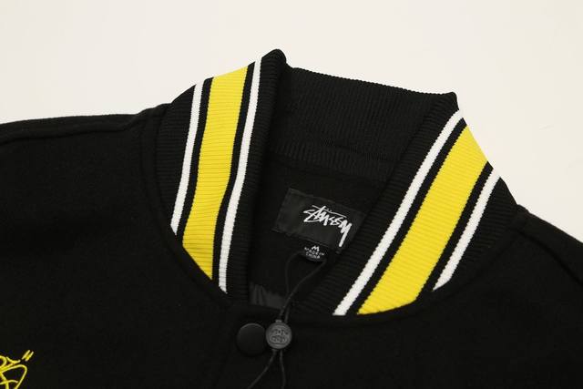 This baseball jacket, which Stussy had been teasing since last year, boasts excellent overall quality. It's a peripheral jacket released to celebrate Metalheadz Music's 30th anniversary. The design continues Stussy's signature short and wide silhouette, looking very neat. The black and yellow color is eye-catching and exudes a strong street style! Featuring heavy-duty imported towel embroidery with up to 600,000 stitches, original design and 1:1 custom-made accessories, a relaxed fit for easy wear