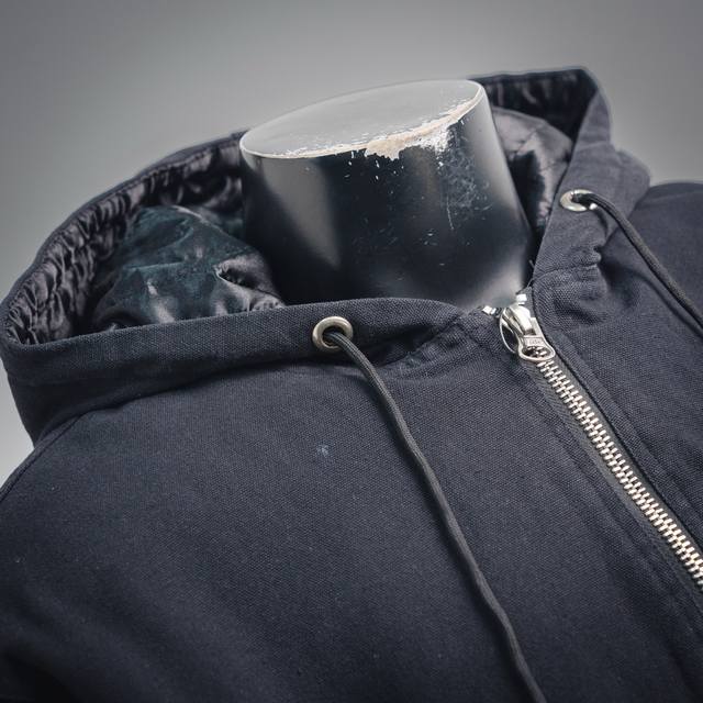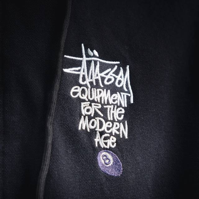 Stussy Washed Distressed Letter Embroidery Black Hooded Workwear Cotton Jacket (Ddd) Available for 3499. Washed distressed fabric, original color, cotton lining, black 8 letter embroidery on the chest, billiards logo embroidery. (Ddd) Complete set of original labels and accessories. (Ddd) The perfect choice for American retro style. (Ddd) Canvas Insulated Work Jacket. (Ddd) Quilted satin lining, 100% pure cotton. (Ddd) YKK metal zipper, elastic cuffs and hem. (Ddd) Embroidered lettering and eight-ball graphic on the left chest. Original design and pattern making, all accessories match the original. (Ddd) Colors: Purple, Black. (Ddd) Sizes: S-XL. (Ddd)