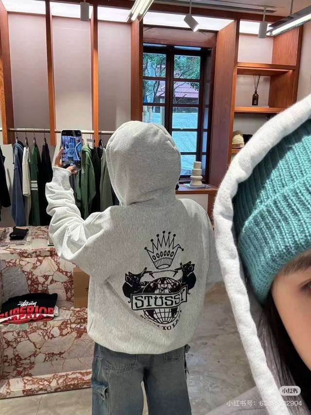 / Stussy-916# Stussy Trendy Crown Elephant Hooded Zip-Up Sweatshirt Jacket, 2025 A